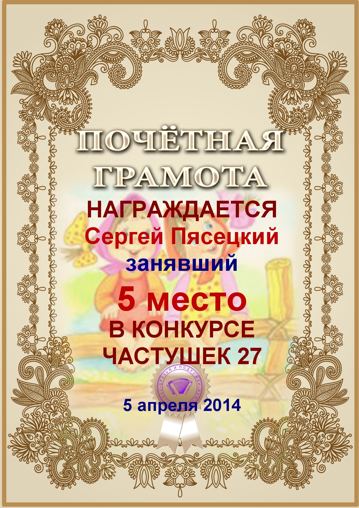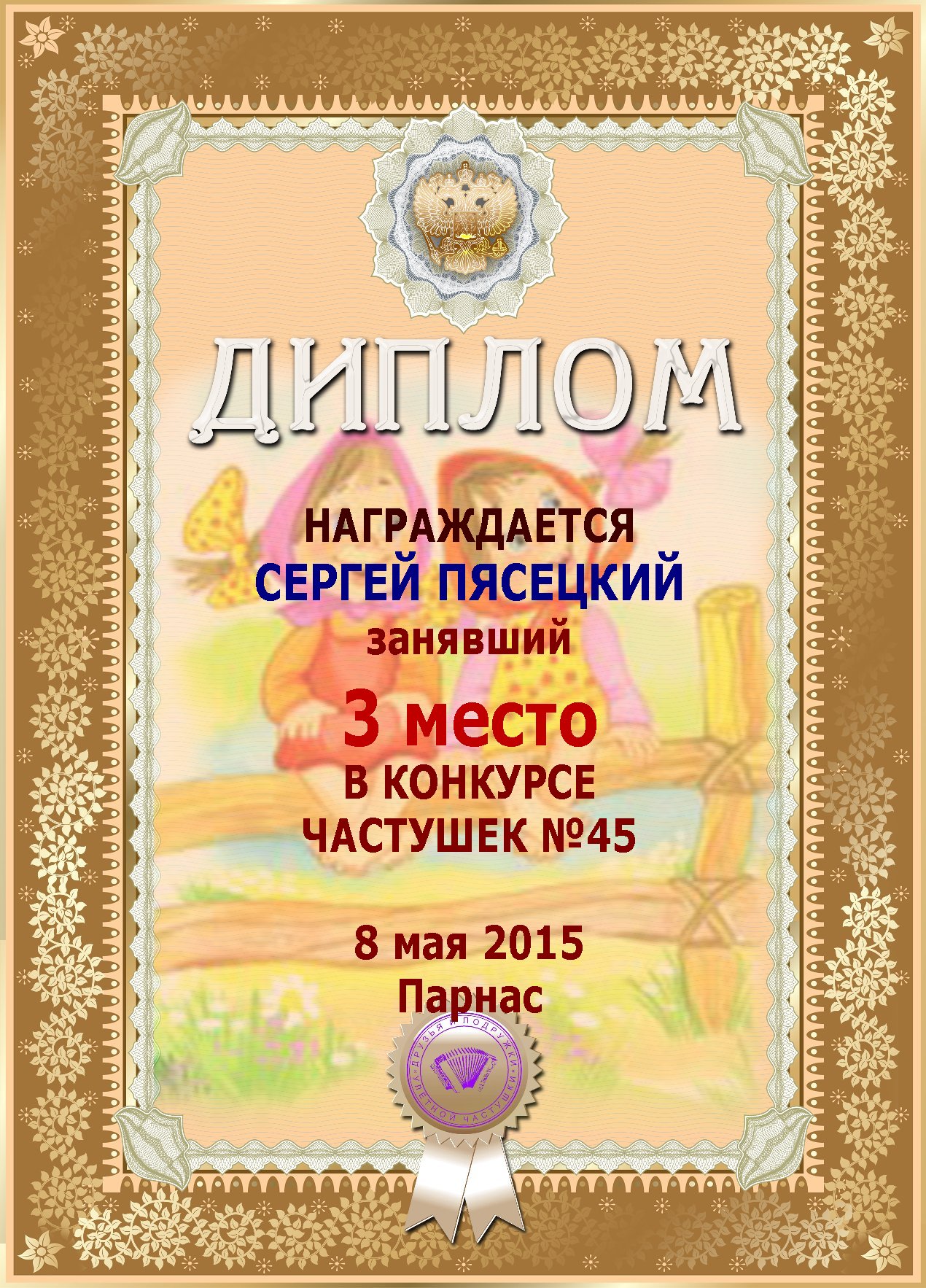 за 3е место в конкурсе частушек №45