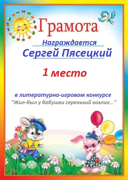 Грамота за творческие успехи в литературно-игровом конкурсе "В гостях у буриме".ПОЗДРАВЛЯЕМ!