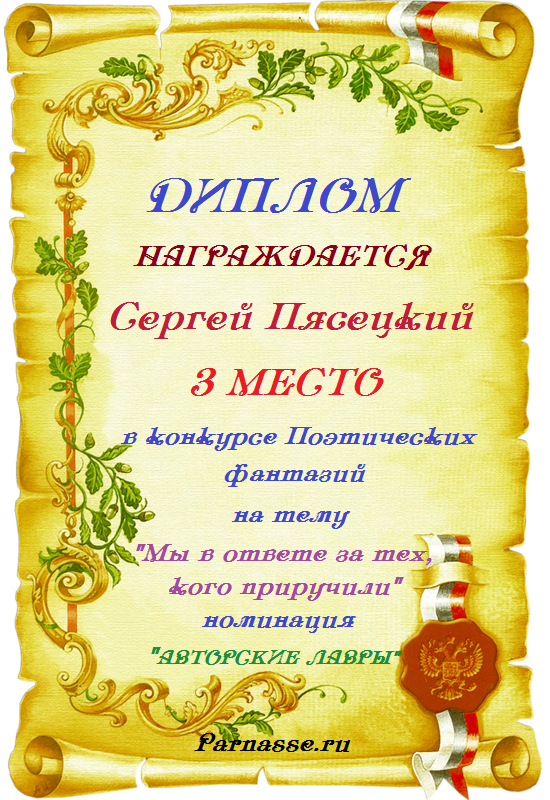 ![]() медаль за 3 место в конкурсе Поэтических фантази