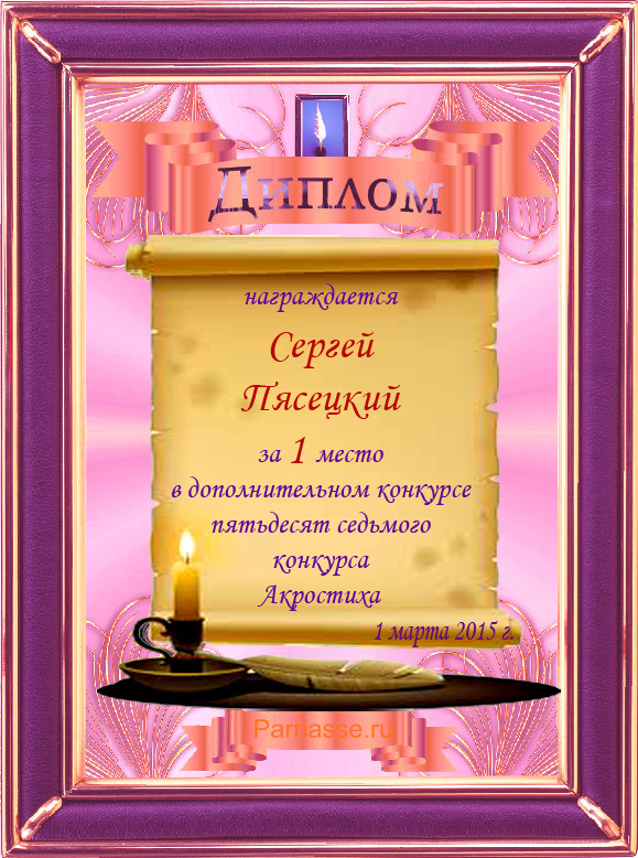 Диплом победителю в конкурсах Акростиха в честь пятилетия конкурса Акростиха!