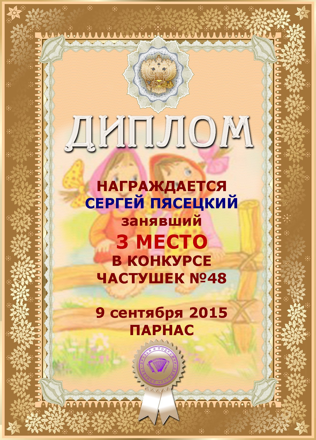 за 3е место в конкурсе частушек 48