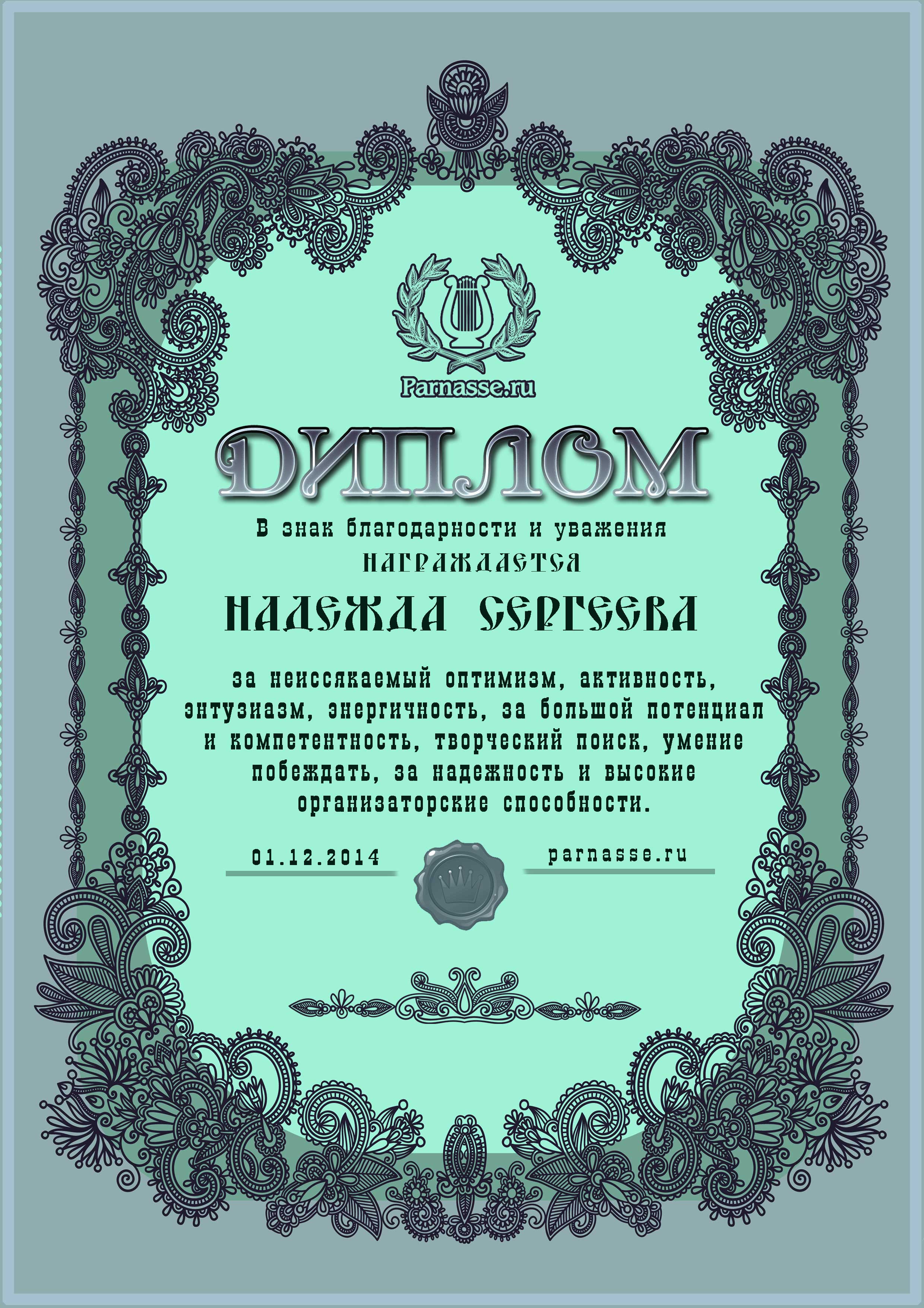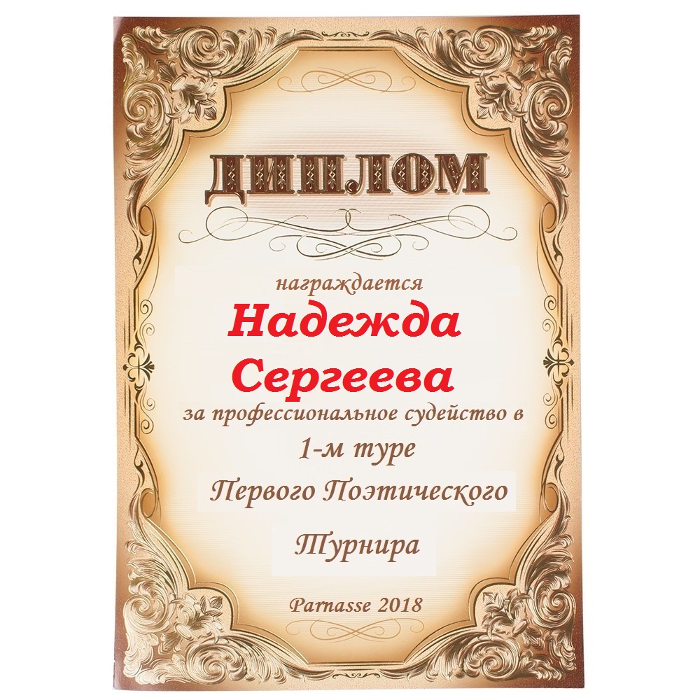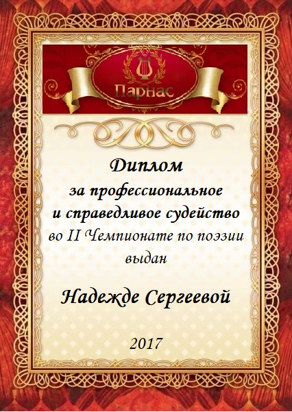 Уважаемая Надежда!Спасибо Вам большое за высокопрофессиональное, объективное судейство конкурсов на Парнасе!
