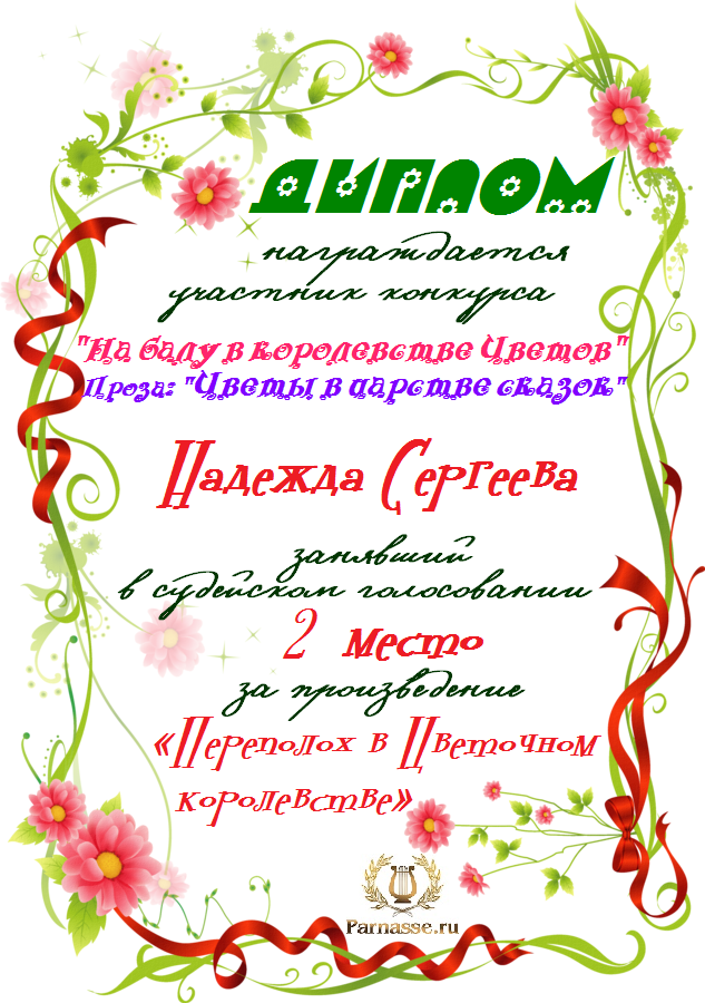 Второе место в конкурсе " Цветы в царстве сказок", судейское голосование. Поздравляем с прекрасной победой!