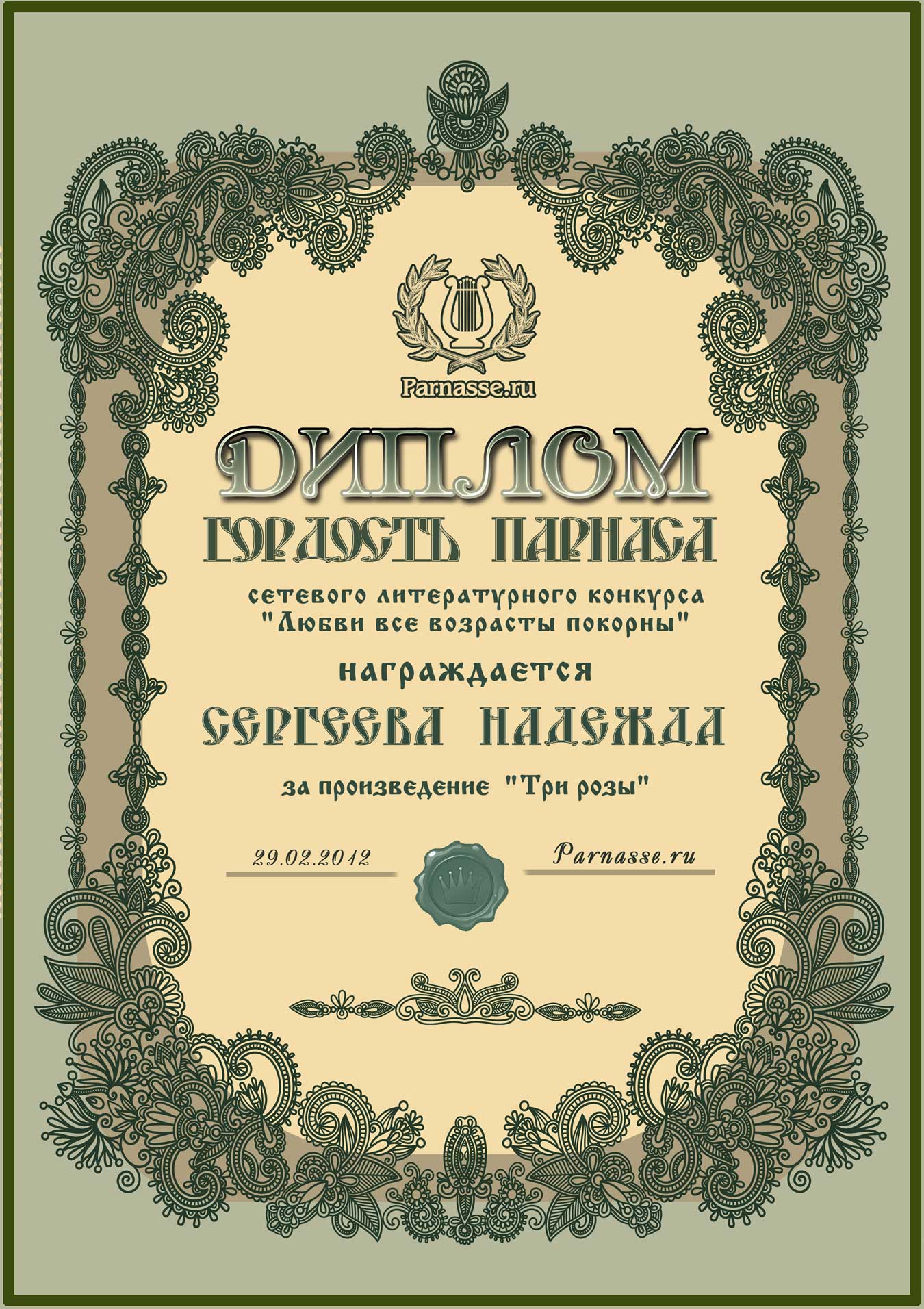 Диплом судьи сетевого литературного конкурса "Любви все возрасты покорны"