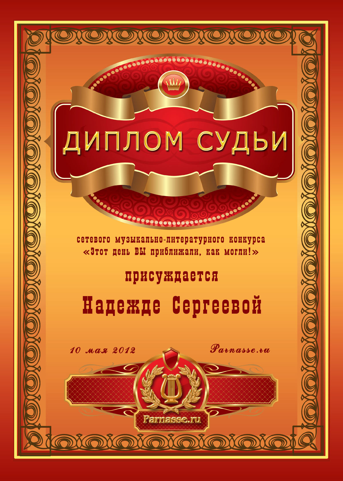 Диплом судьи конкурса «Этот день ВЫ приближали, как могли!»