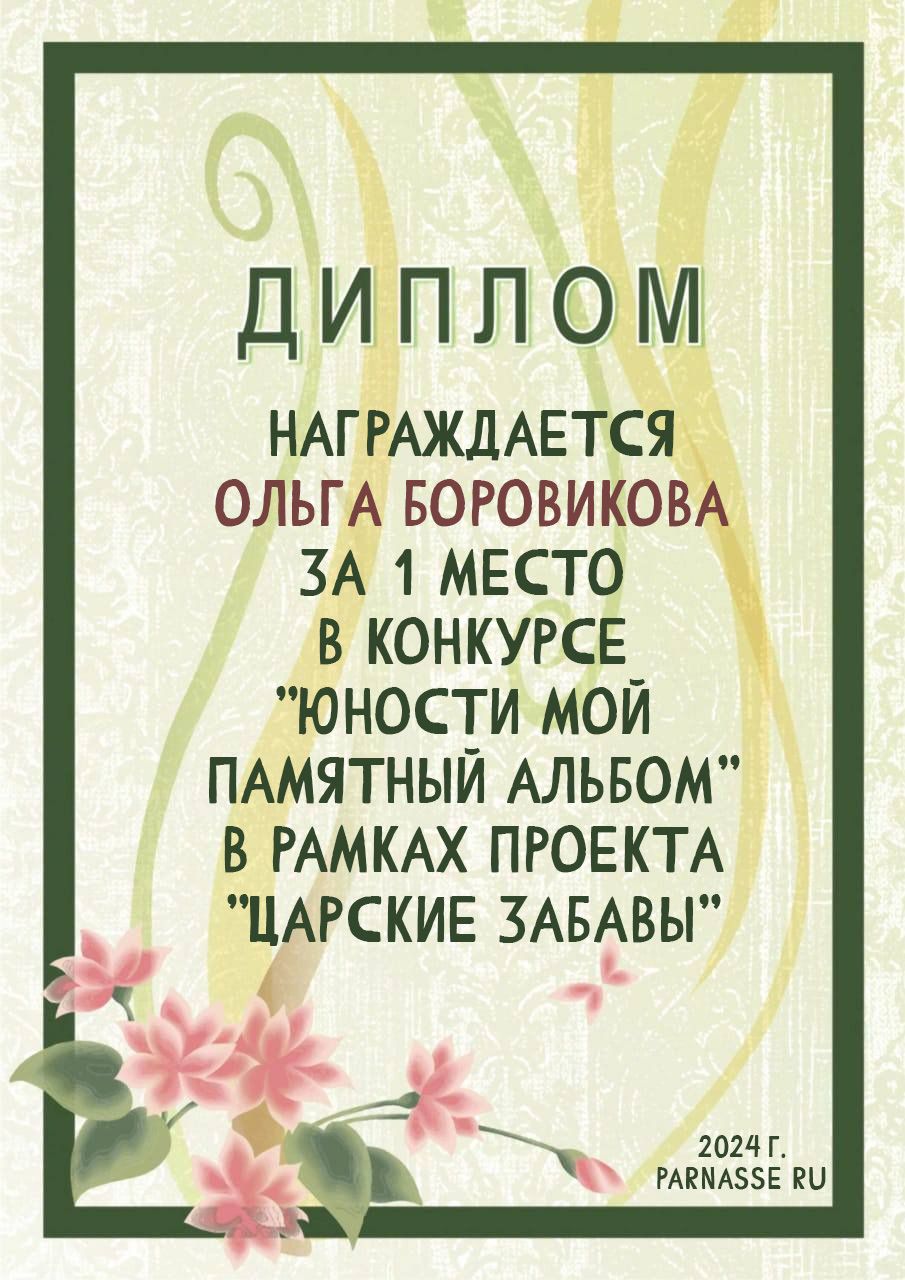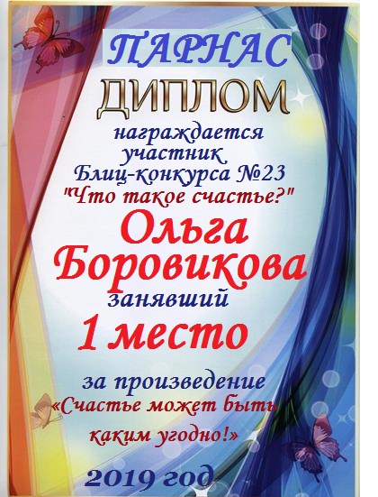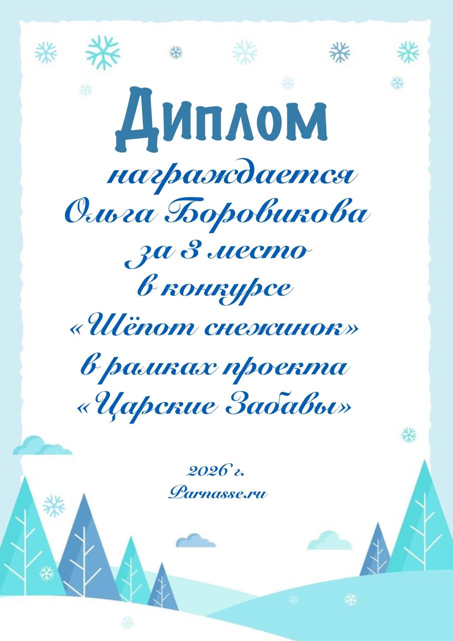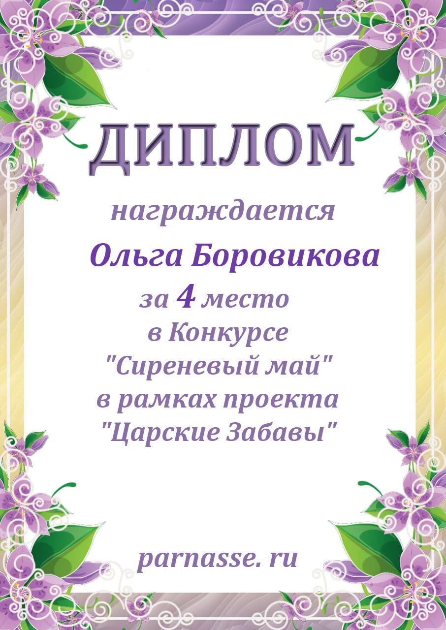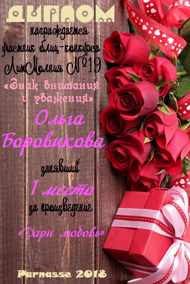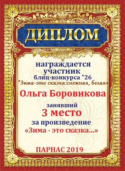 Диплом за 1 место в праздничном конкурсе "Поздравим Парнас с трёхлетием вместе!"