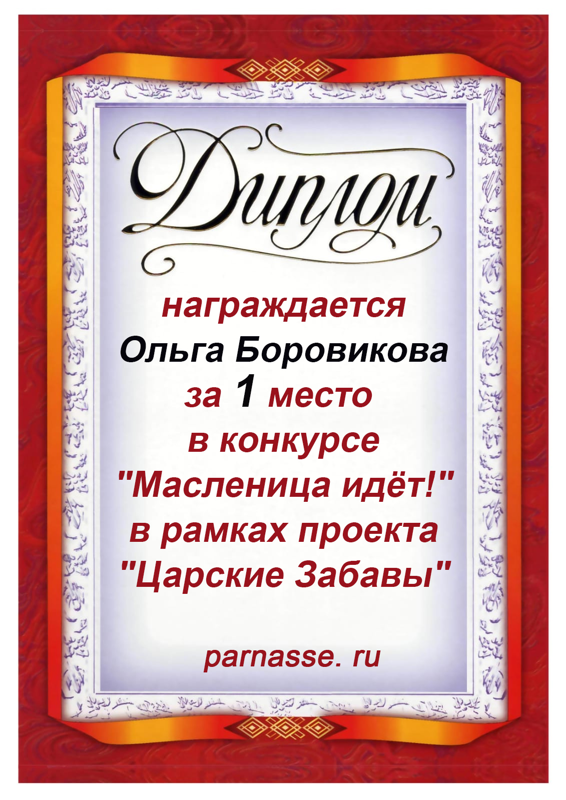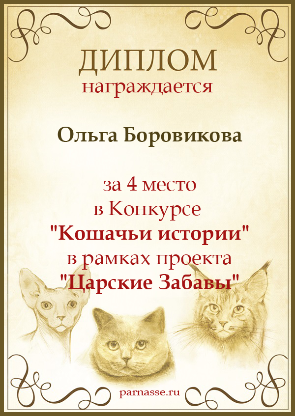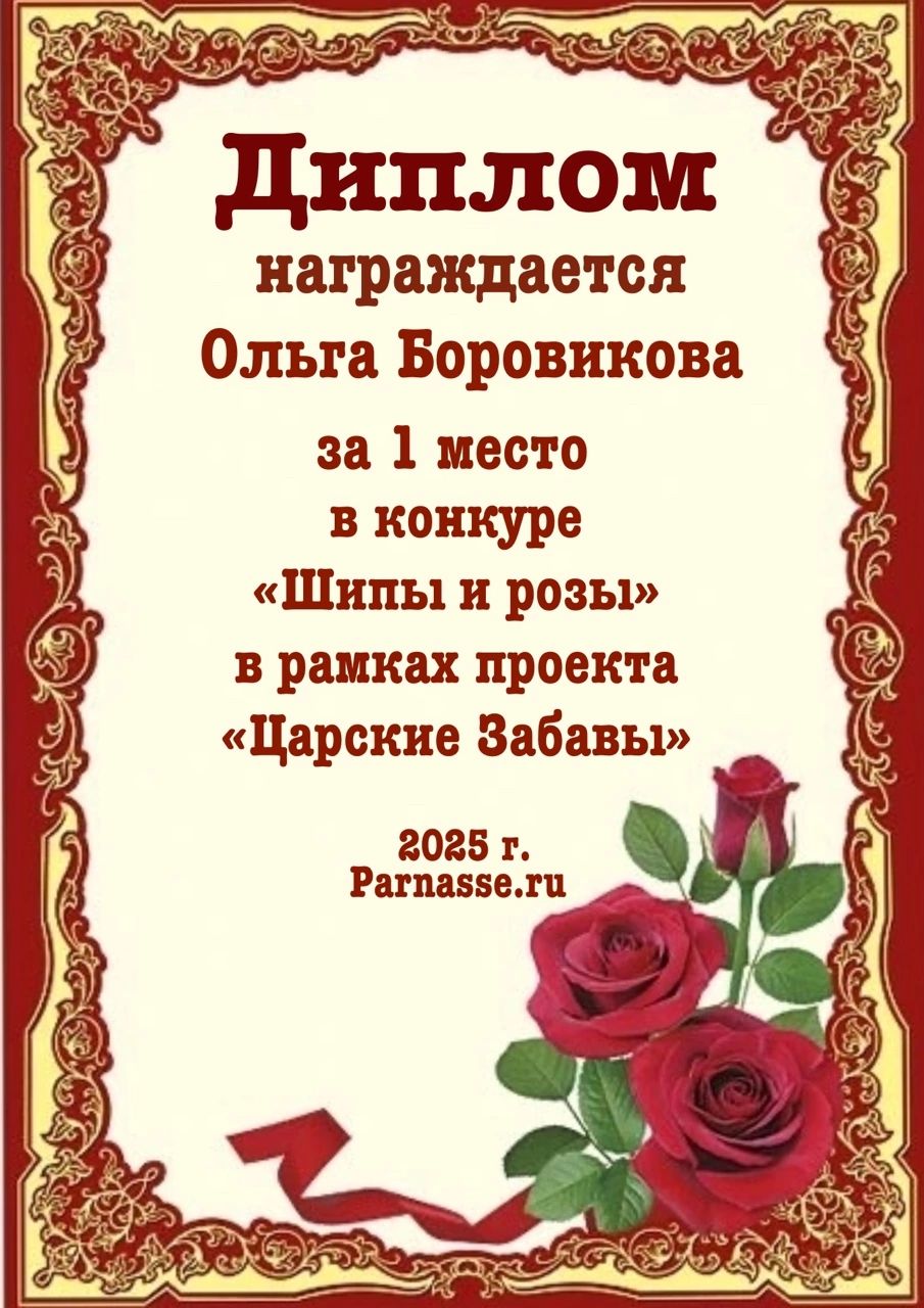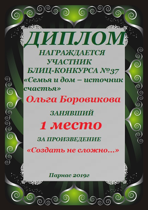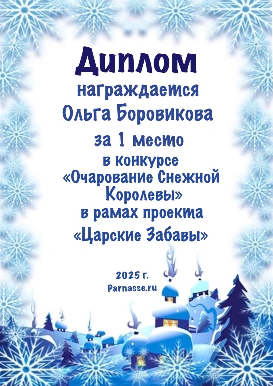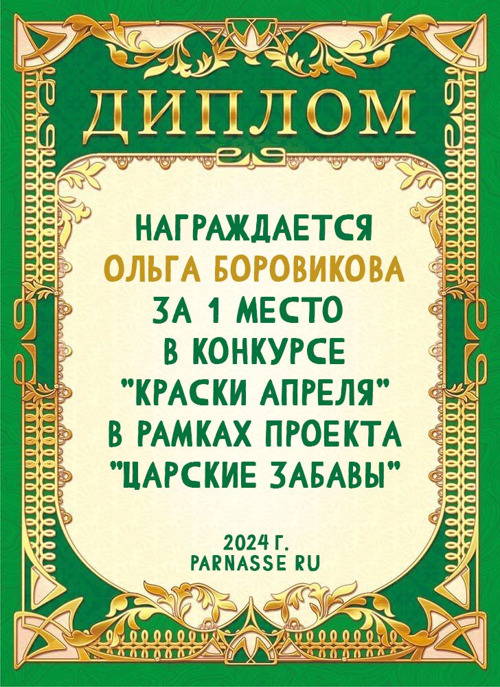 Диплом за 1 место в праздничном конкурсе "Поздравим Парнас с трёхлетием вместе!"
