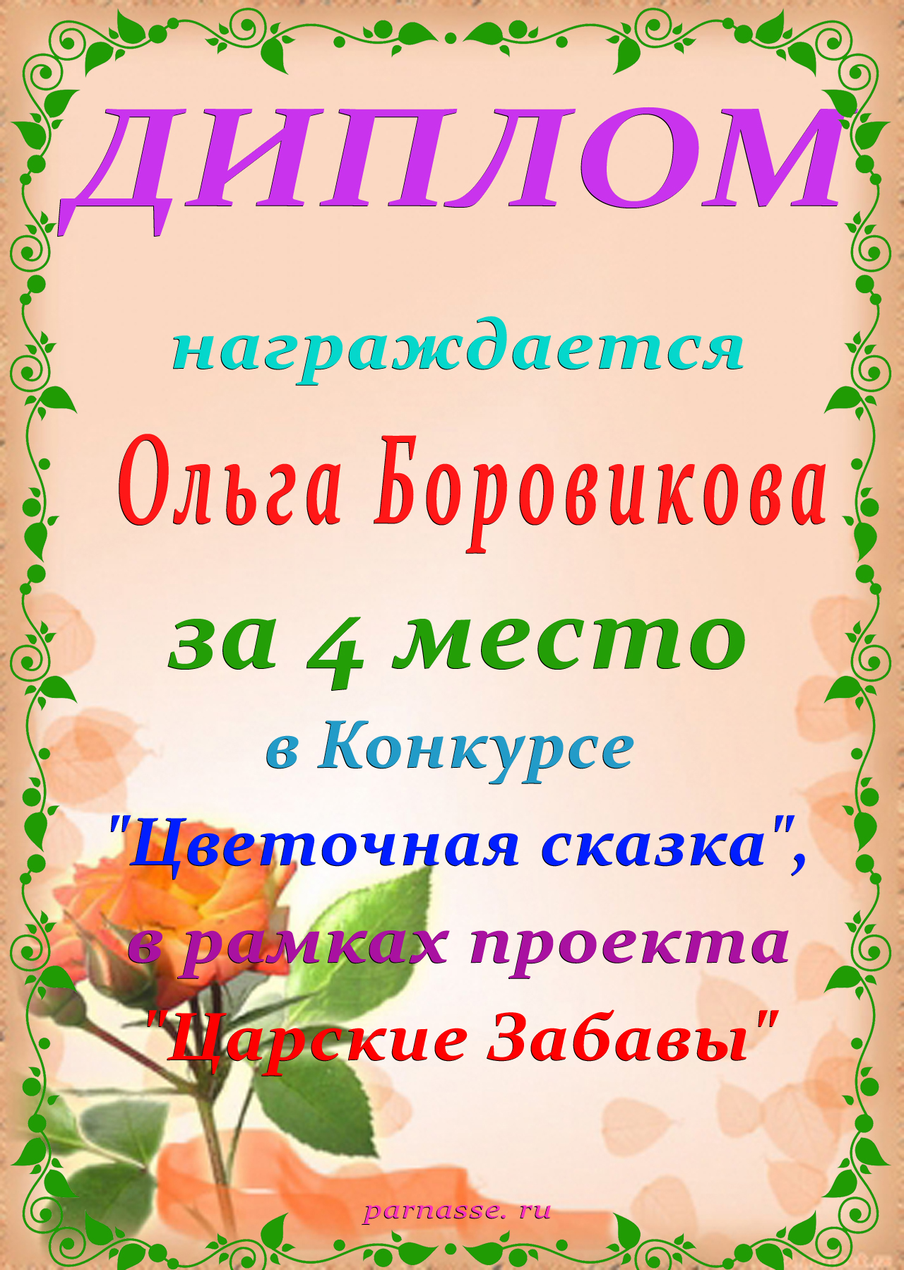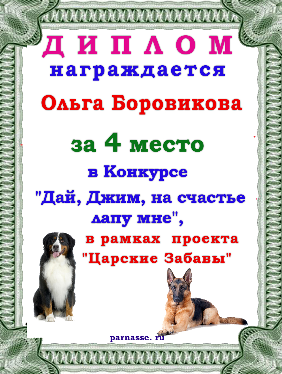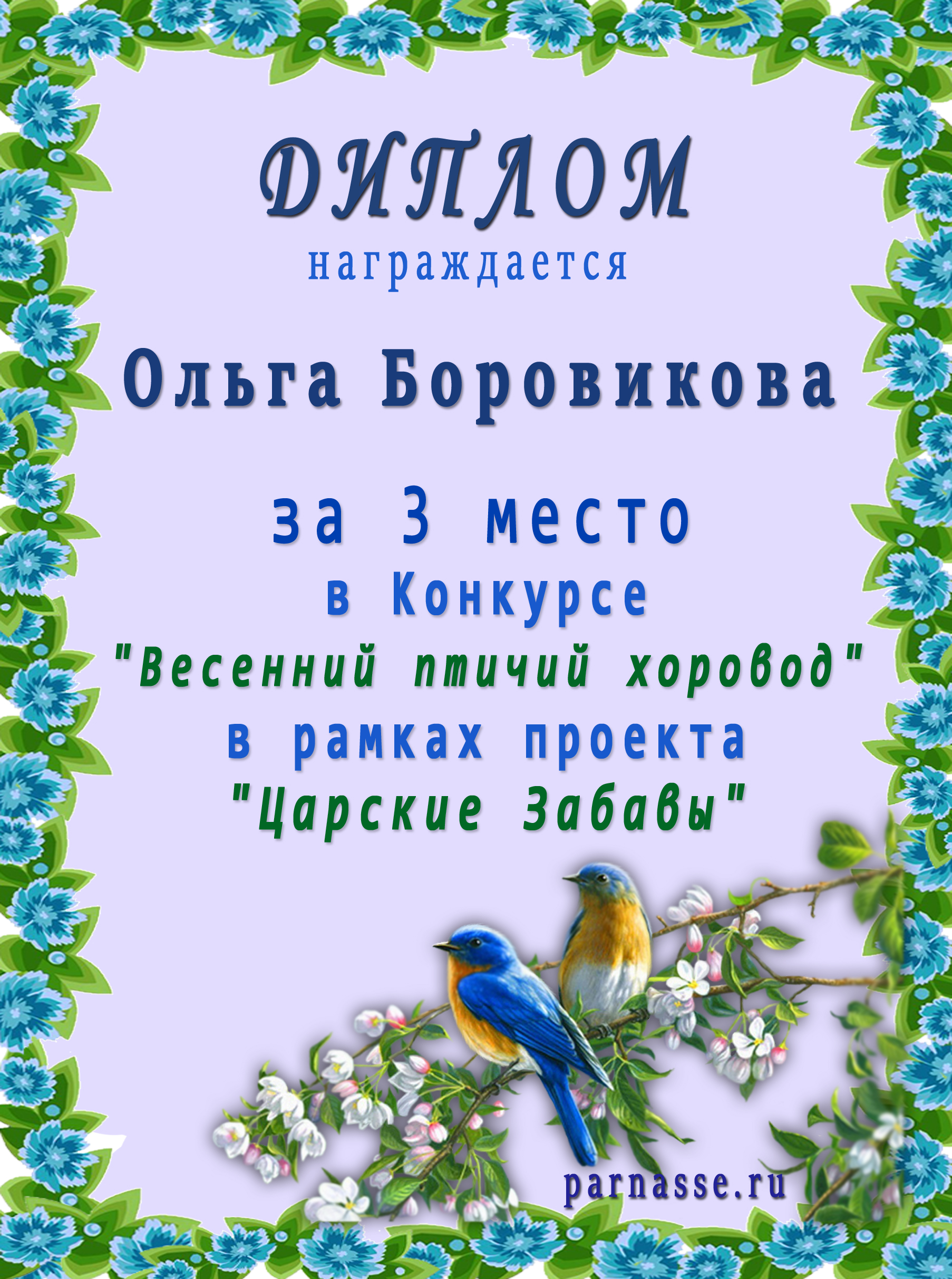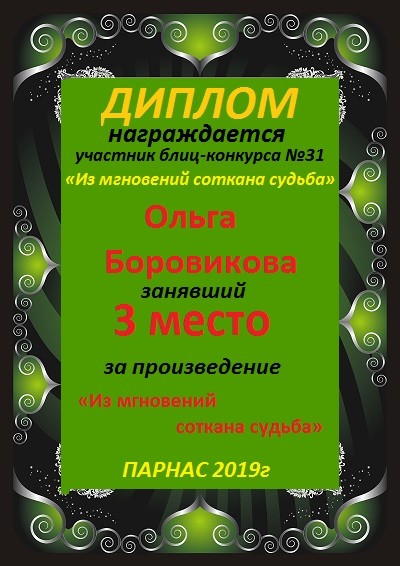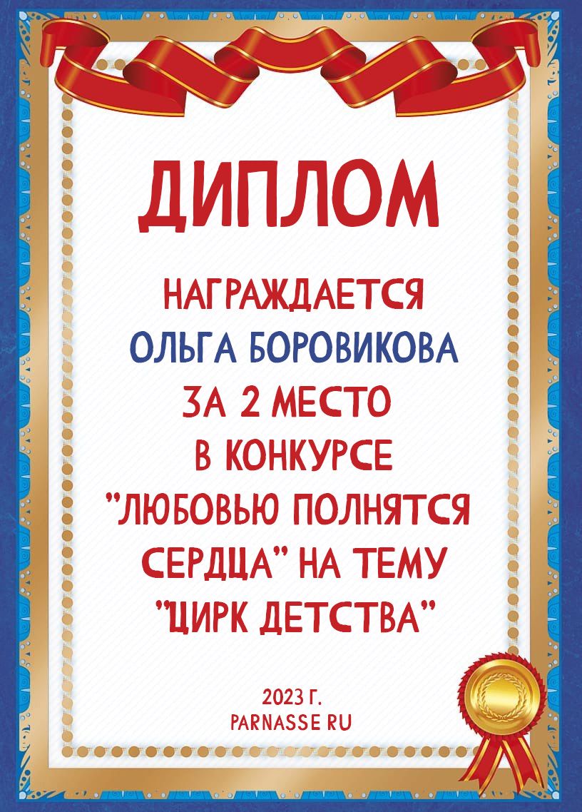 Диплом за 1 место в праздничном конкурсе "Поздравим Парнас с трёхлетием вместе!"
