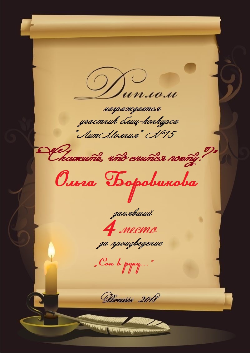 Медаль от ведущей конкурса "Мода сезона" за оригинальный сюжет и авторский стиль стихотворения