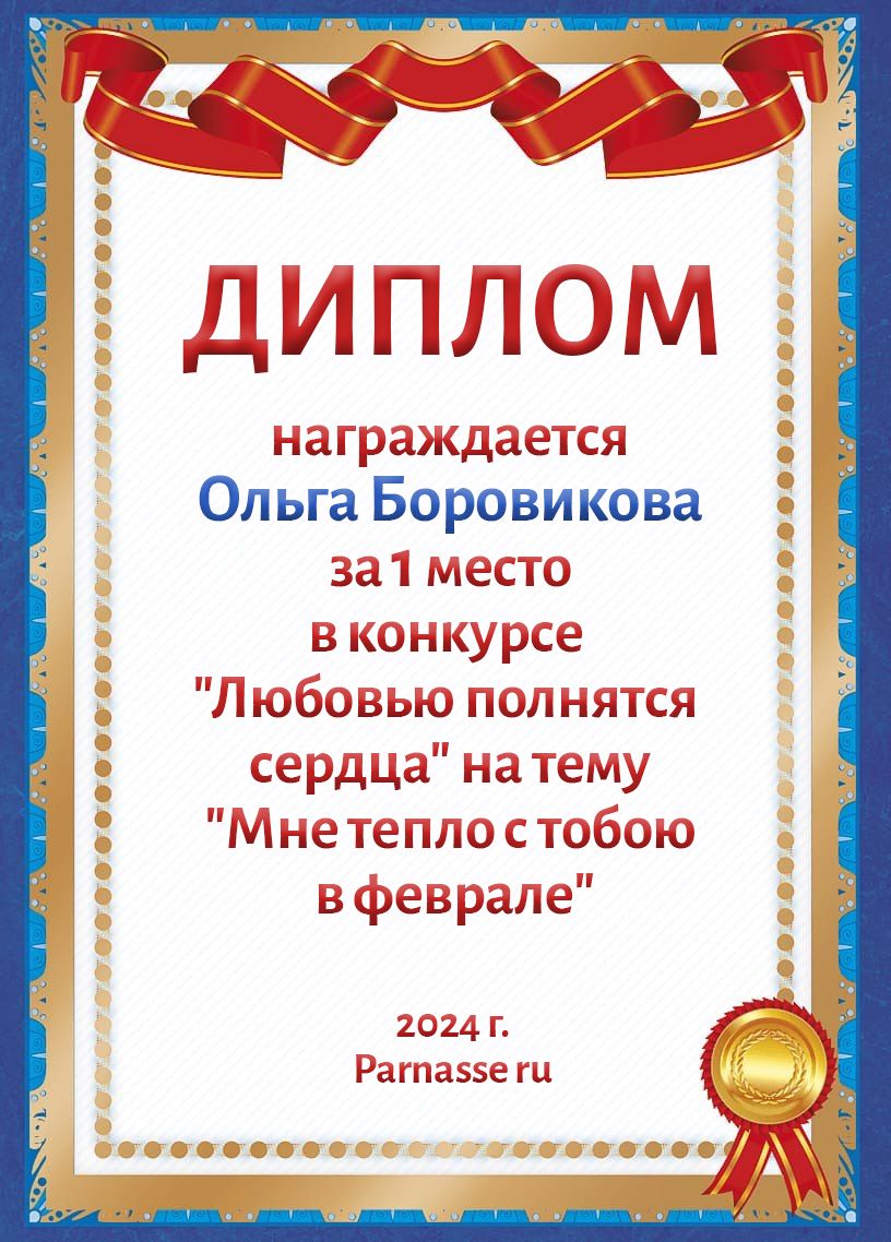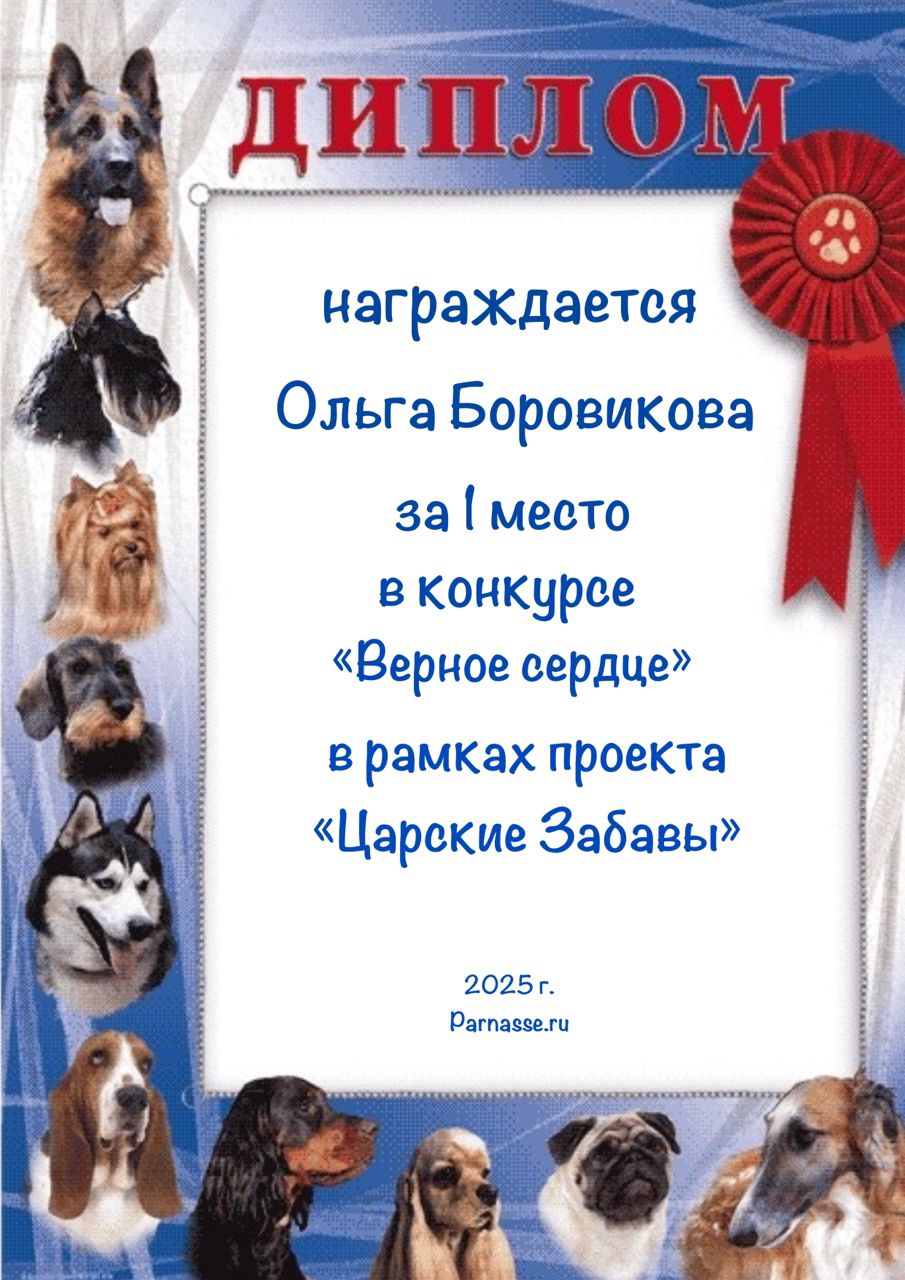 1 место в конкурсе "Верное сердце". Поздравляем!