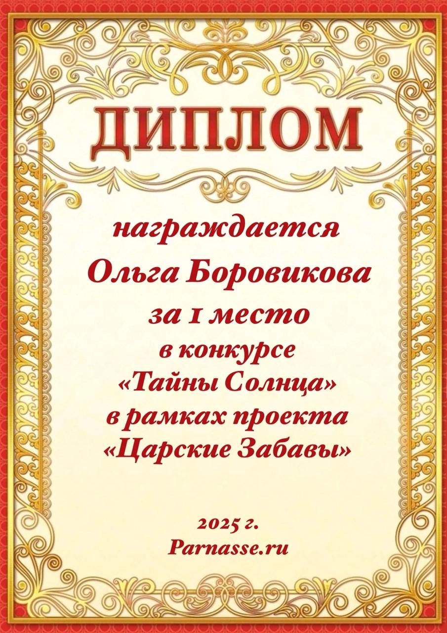 1 место в конкурсе "Тайны Солнца". Поздравляем!