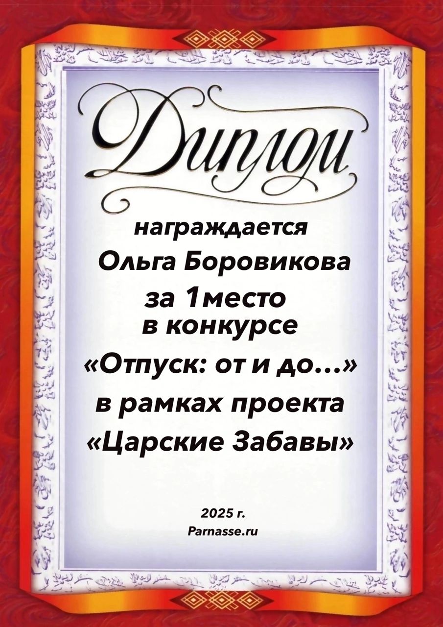 1 место в конкурсе "Отпуск: от и до".. Поздравляем!