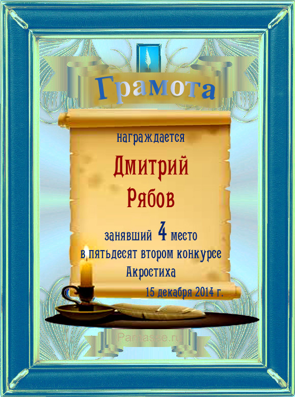 Грамота за 4 место в 50 конкурсе АКРОСТИХА!