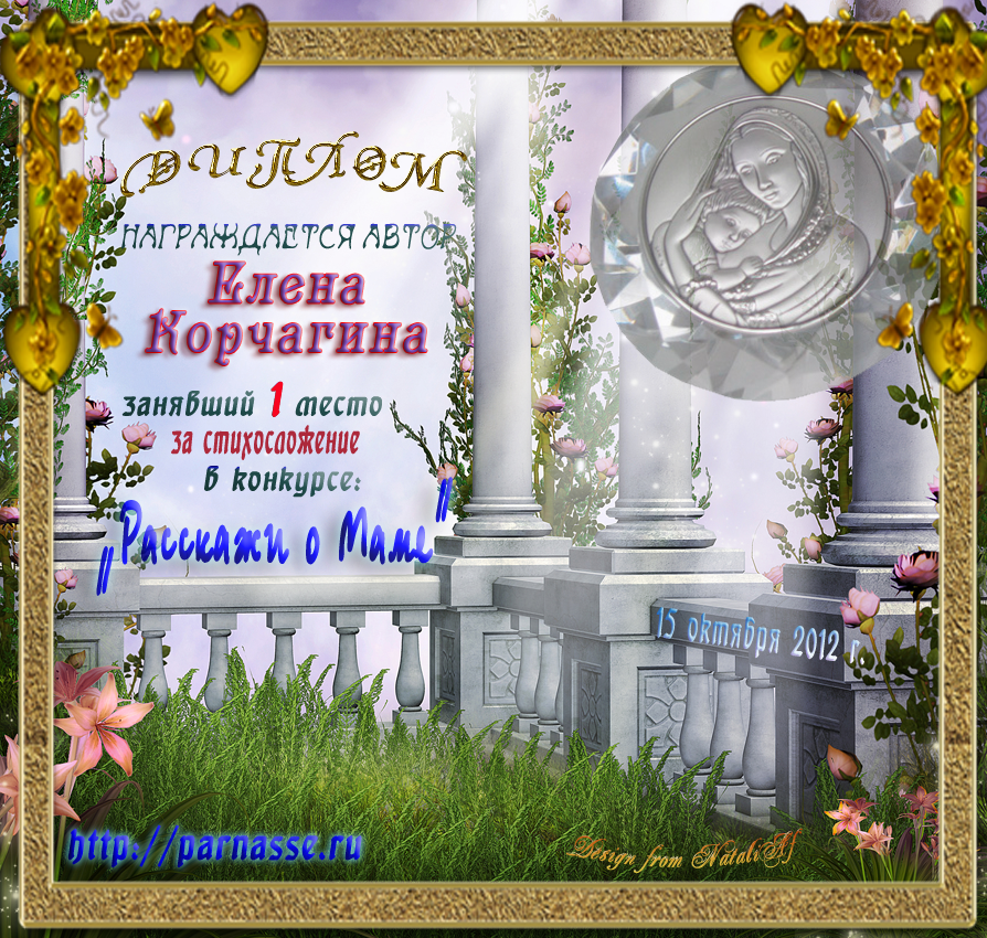 Победителю музыкально-литературного конкурса "Ах, Мама, Мамочка, родная!" Номинация "Стихи о Мамочке". Поздравляем! Счастья Вам, прекрасного настроения, вдохновения, успехов и всего замечательного. Спасибо за участие в конкурсе. С Уважением, Администрация.