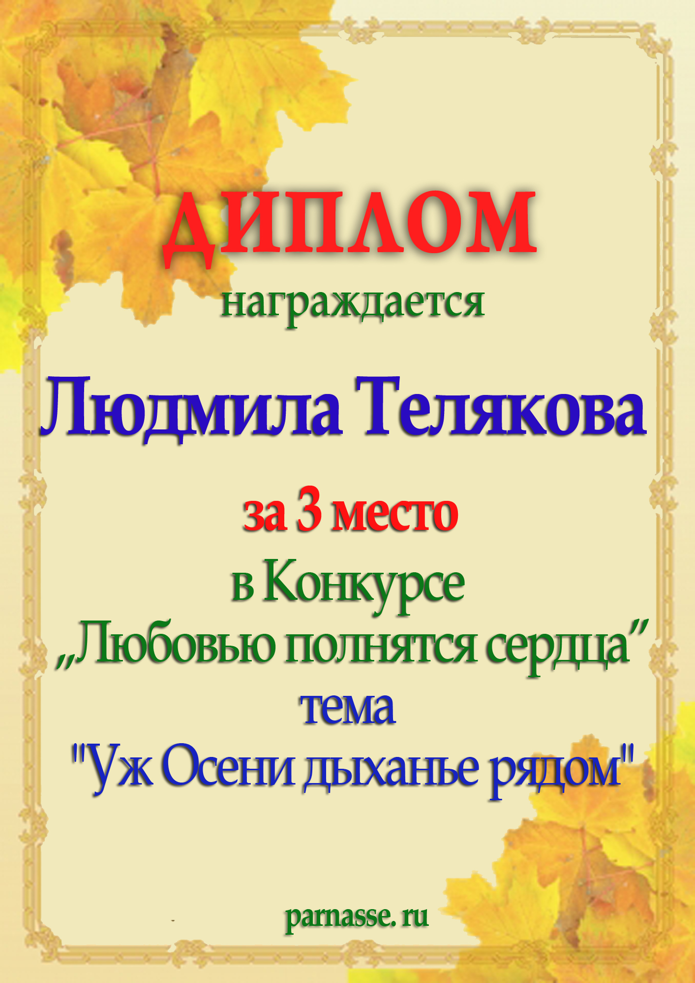 За 3 место в Конкурсе "Уж Осени дыханье рядом"