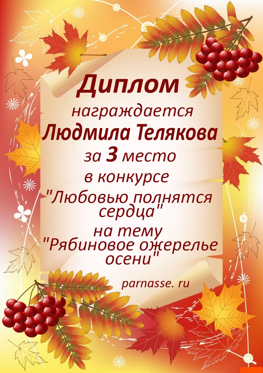 3 место в конкурсе "Любовью полнятся сердца" на тему "Рябиновое ожерелье осени"