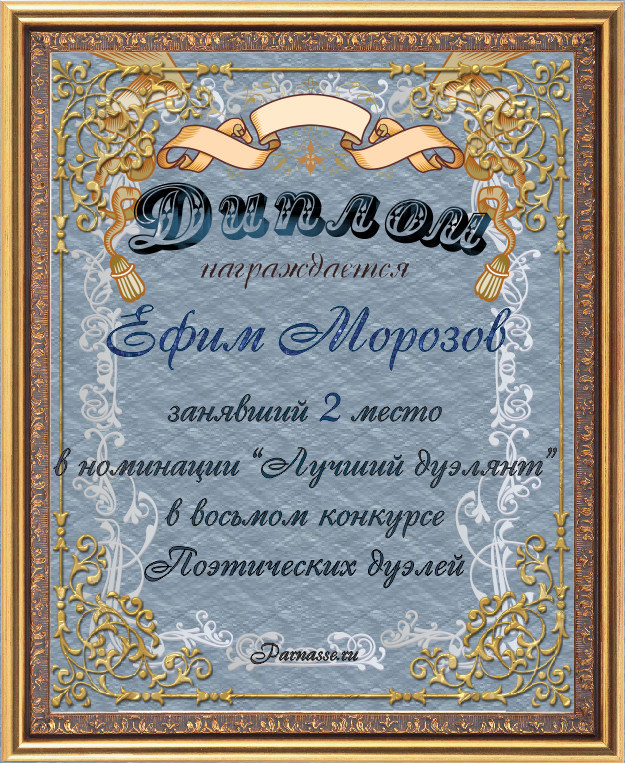Диплом за 2-е место в номинации "Лучший дуэлянт" в восьмом конкурсе поэтических дуэлей