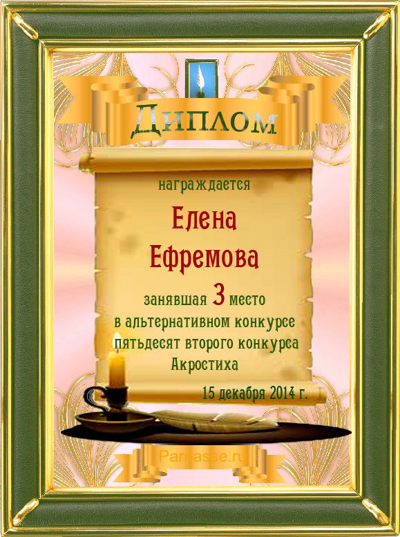 Диплом за 3 место во 2 годовом Альтернативном итоговом конкурсе АКРОСТИХА! ПОЗДРАВЛЯЮ!