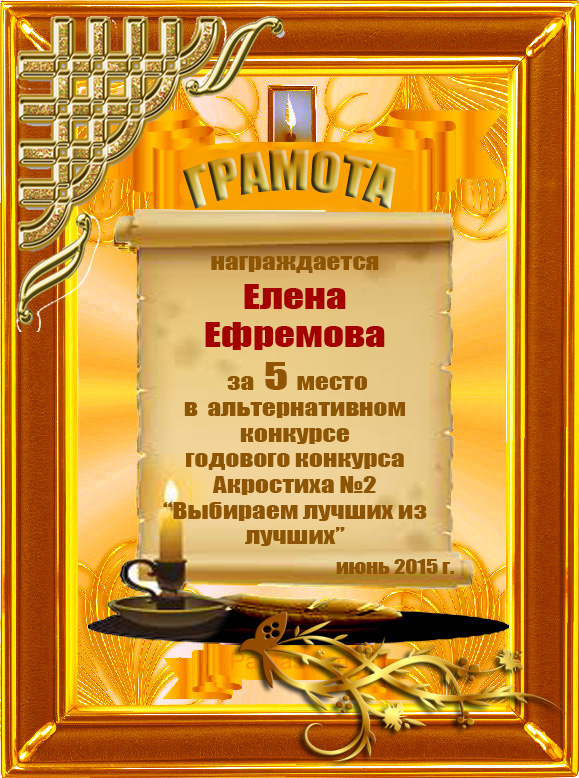 Грамота за 5 место во 2 годовом Альтернативном итоговом конкурсе АКРОСТИХА! ПОЗДРАВЛЯЮ!