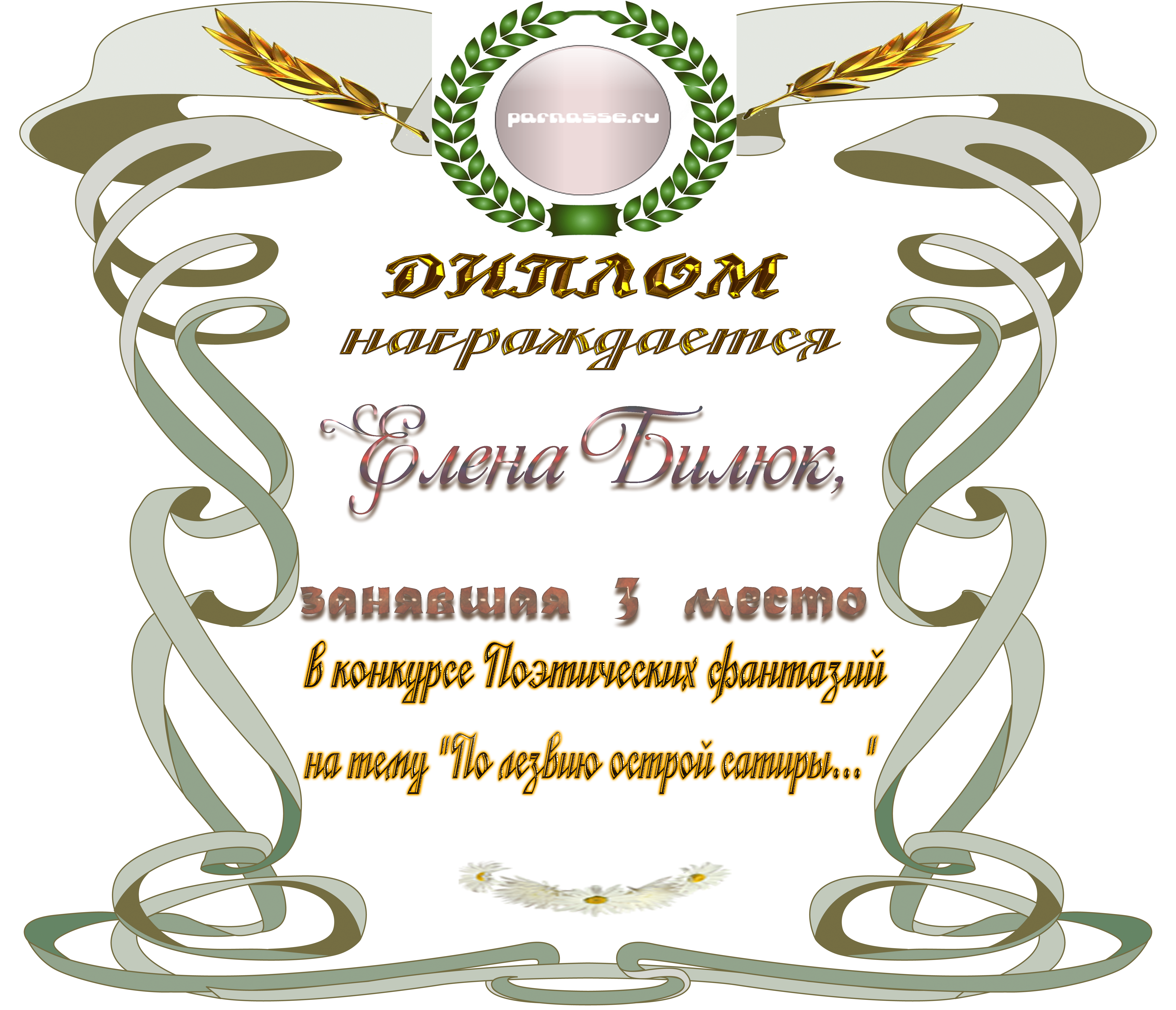 ![]() Медаль за 3 место в конкурсе Поэтических фантазий