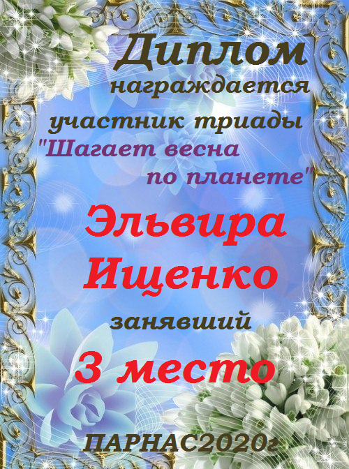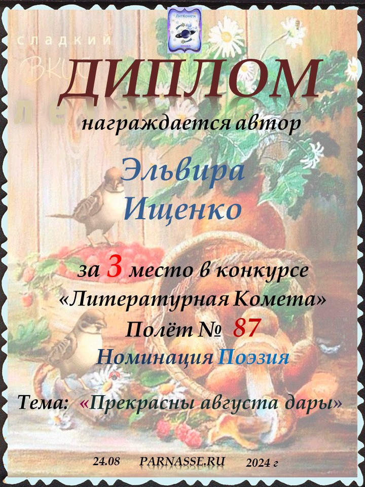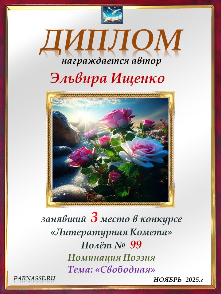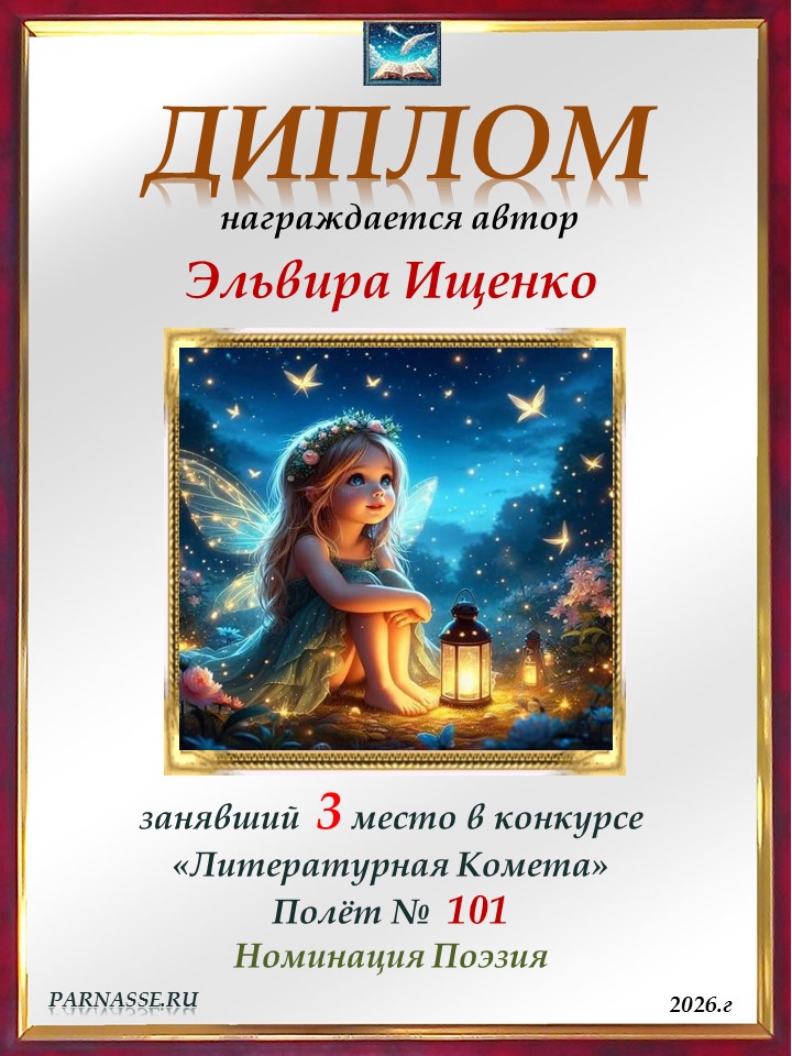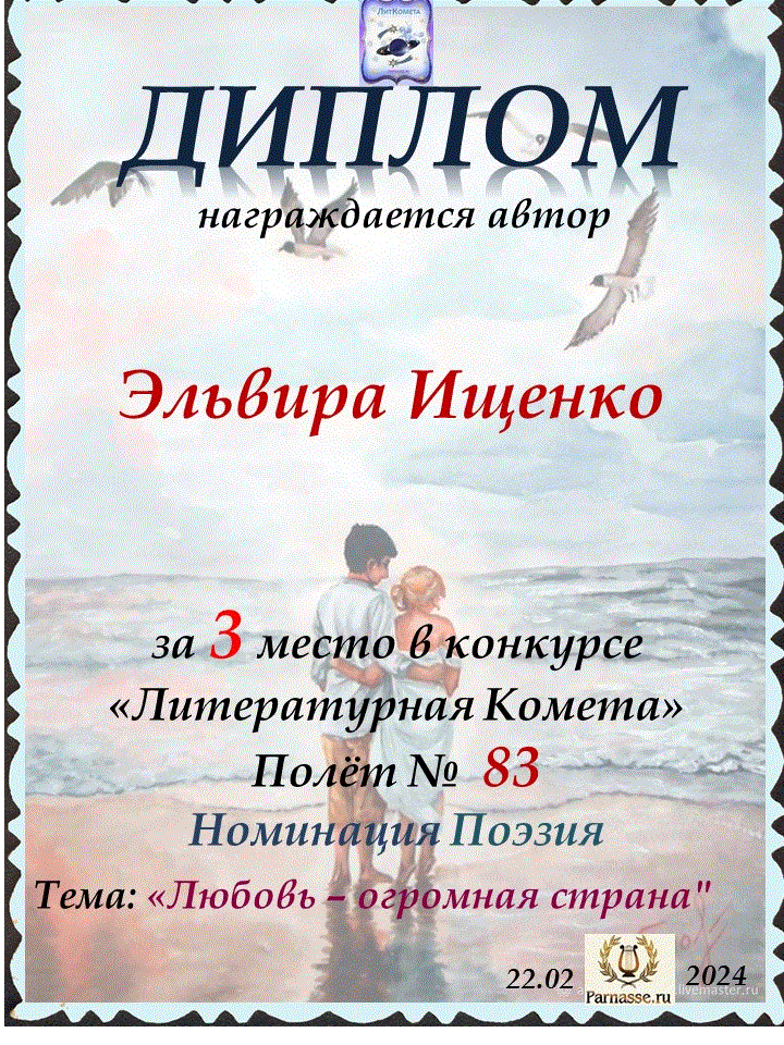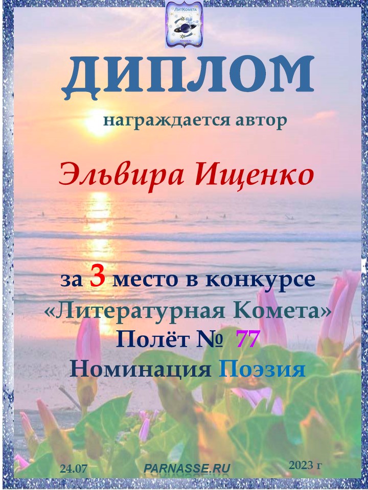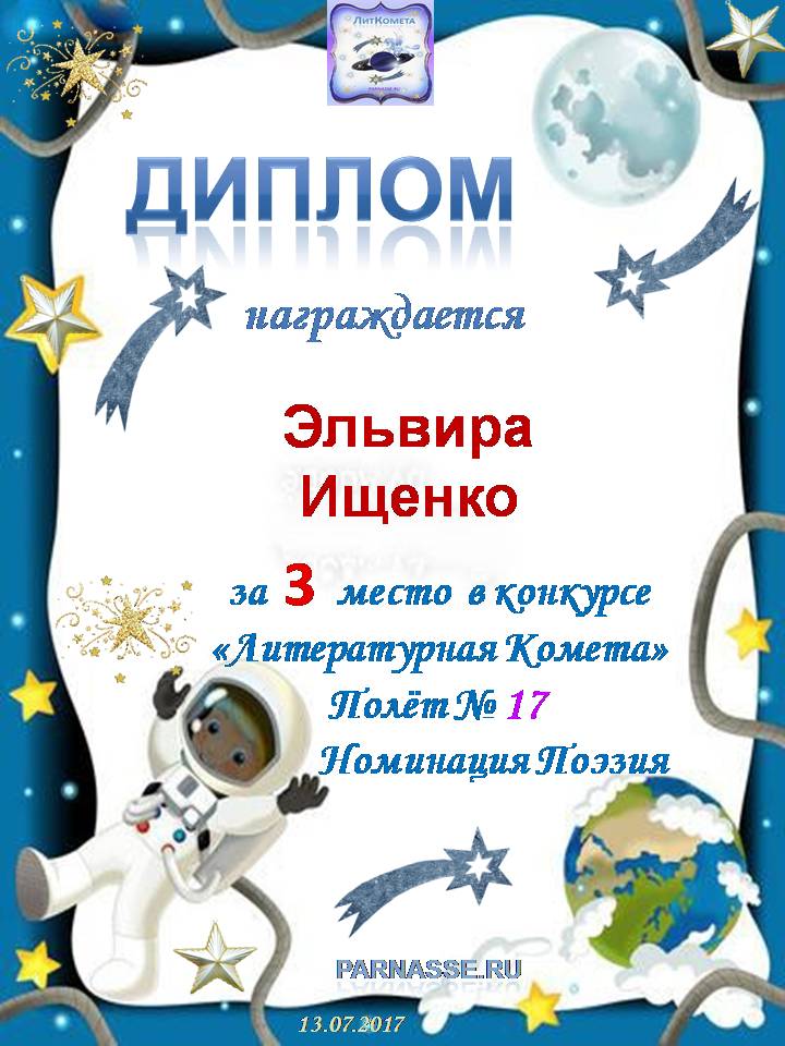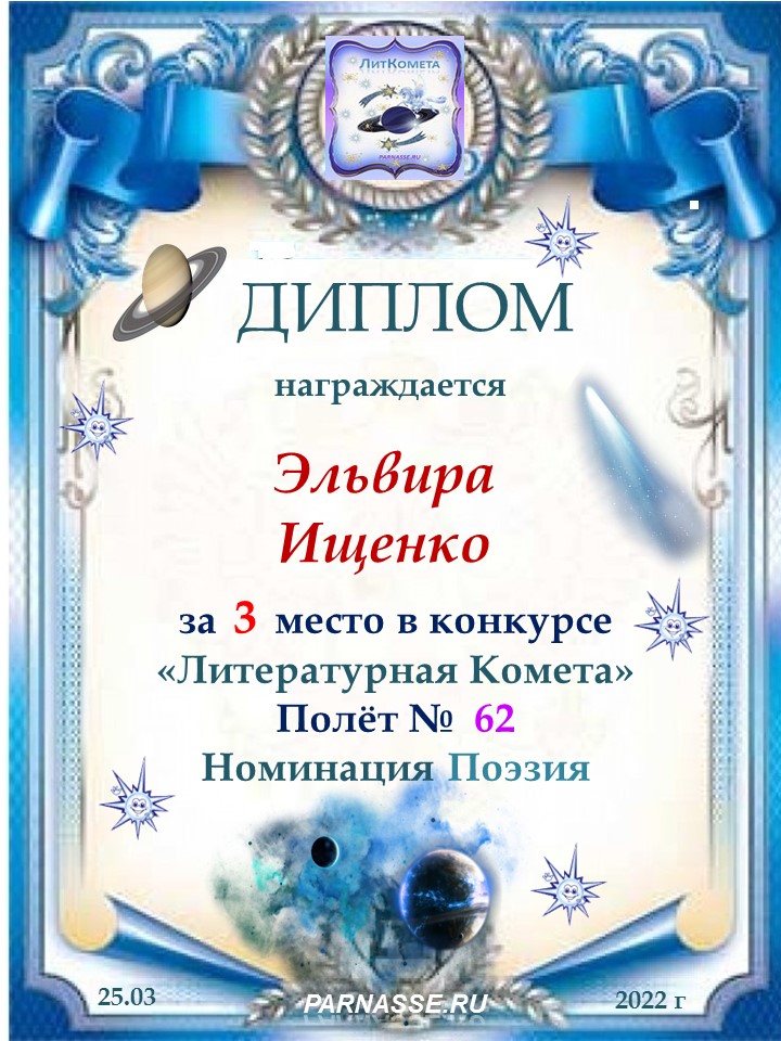 Поздравляю с занятым 3 местом в конкурсе «Литературная Комета – Полёт № 35» - номинация поэзия!
