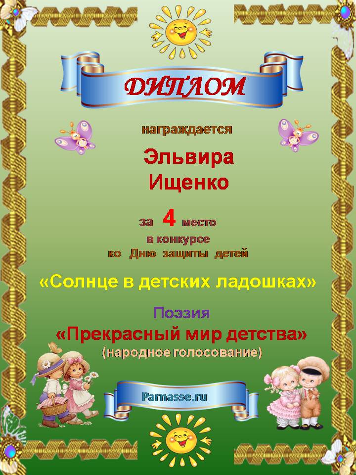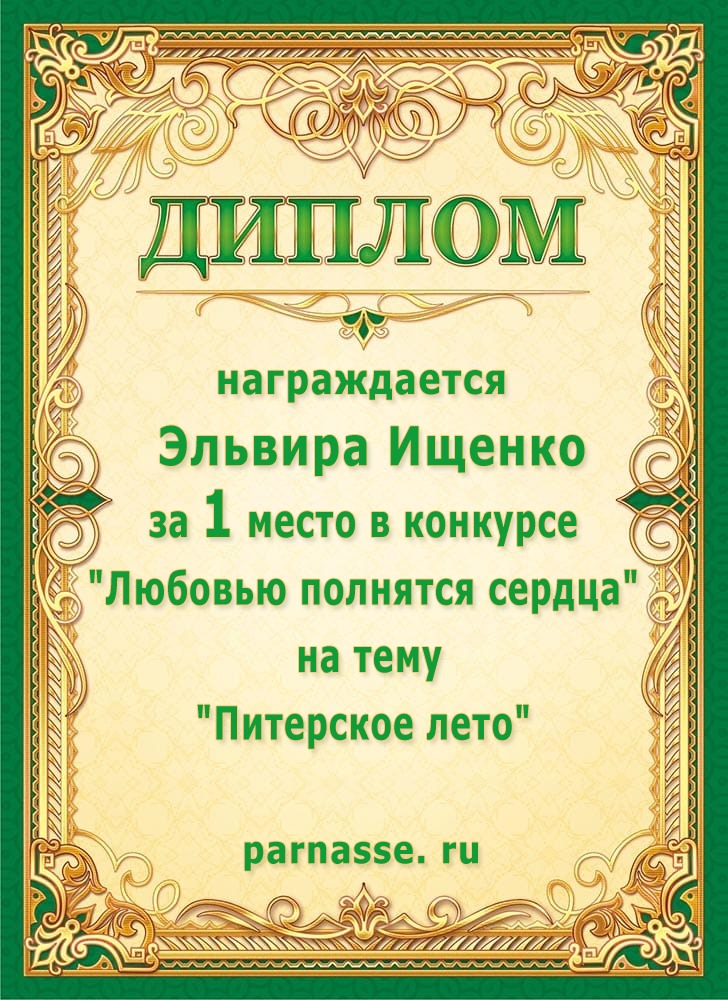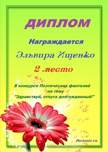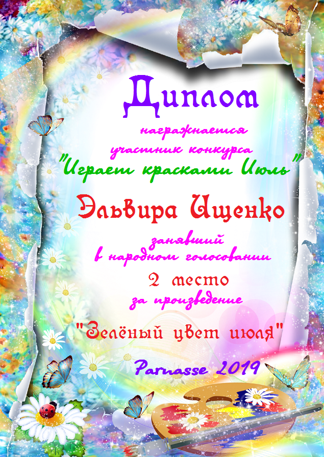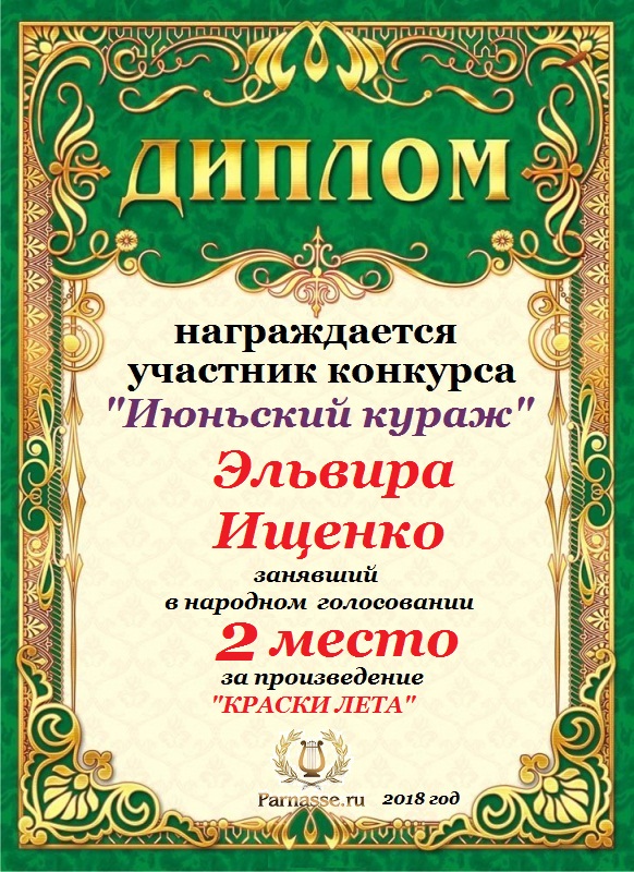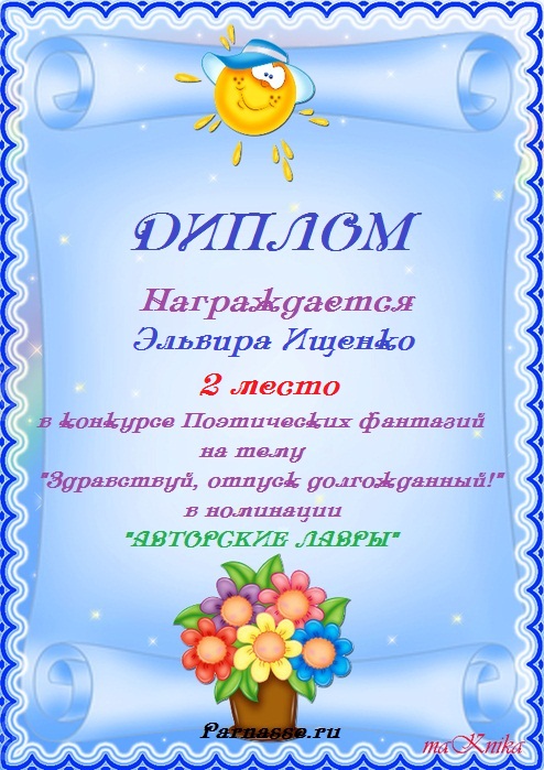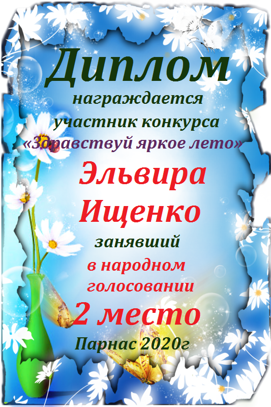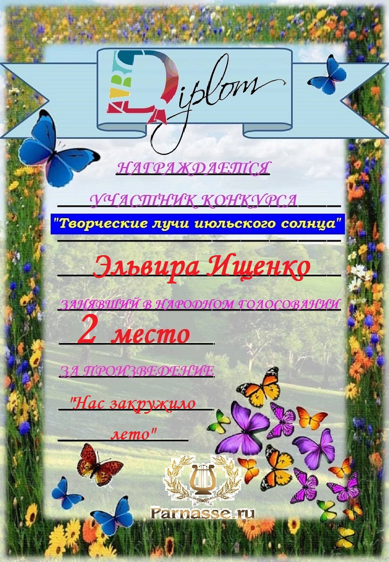 Победителю конкурса: "Под жарким взглядом летней музы". Поздравляем с 3 местом в номинации - "Стихи о лете"