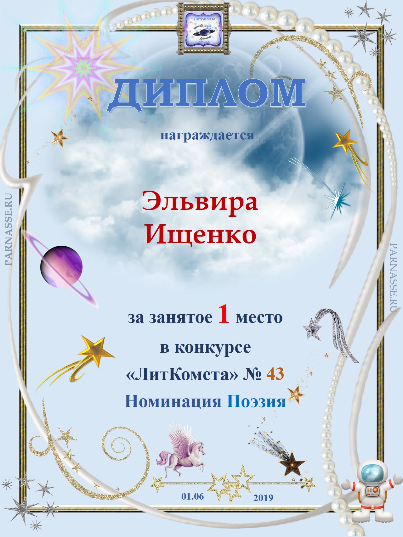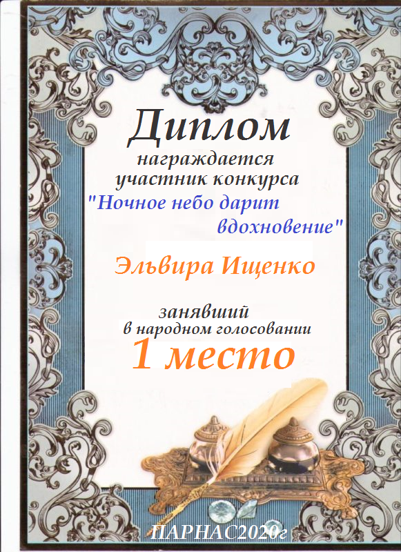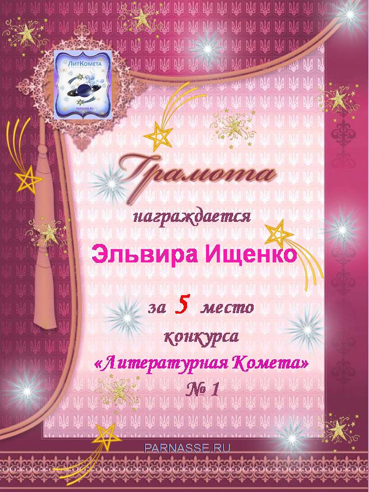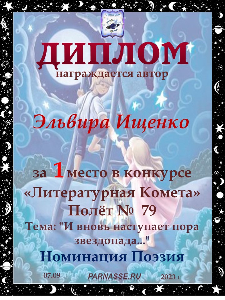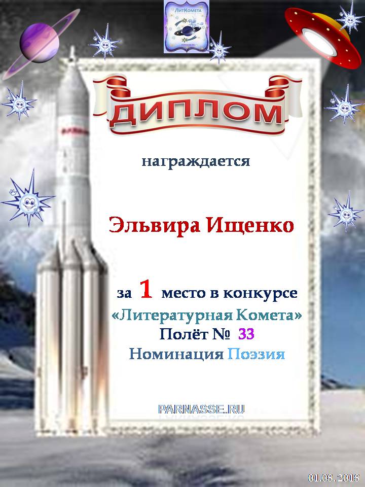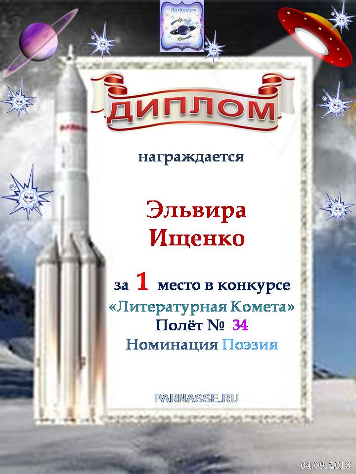 Поздравляю с занятым 1 местом в конкурсе «Литературная Комета – Полёт № 34» - номинация поэзия!