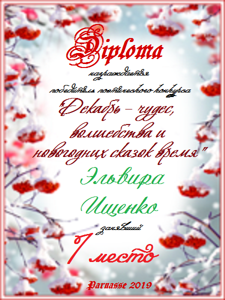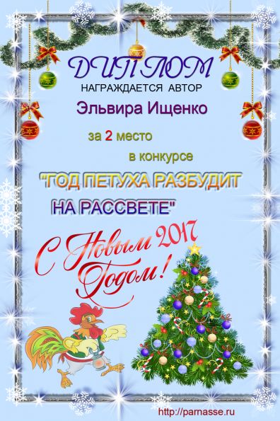 Поздравляю с победой - 2 местом в номинации Поэзия! Желаю счастья, благополучия и здоровья в наступающем году!