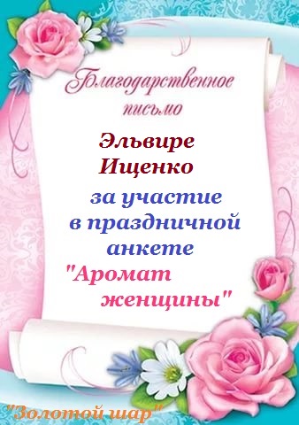 Благодарственное письмо за участие в праздничной поздравительной программе "ЖЕНСКИЙ ДЕНЬ КАЛЕНДАРЯ", посвящённой 8 Марта.