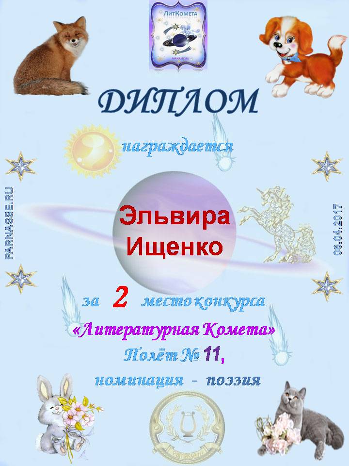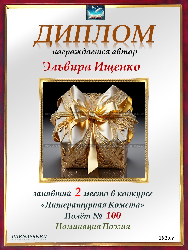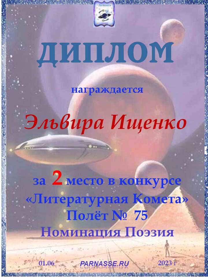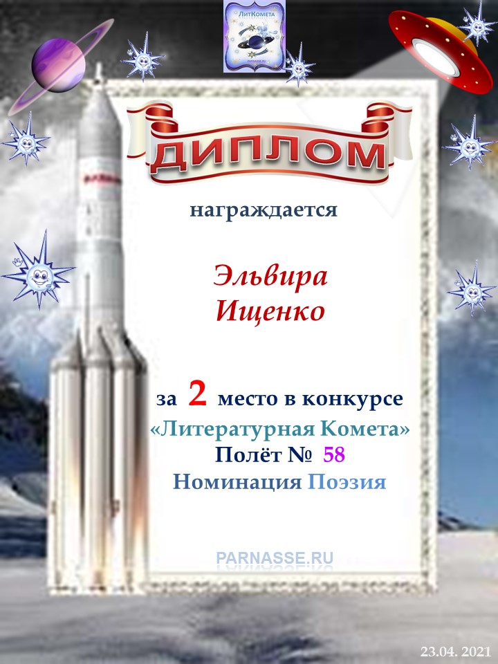Поздравляю с занятым 2 местом в конкурсе "Литературная Комета - Полёт № 61" в Номинации Поэзия!