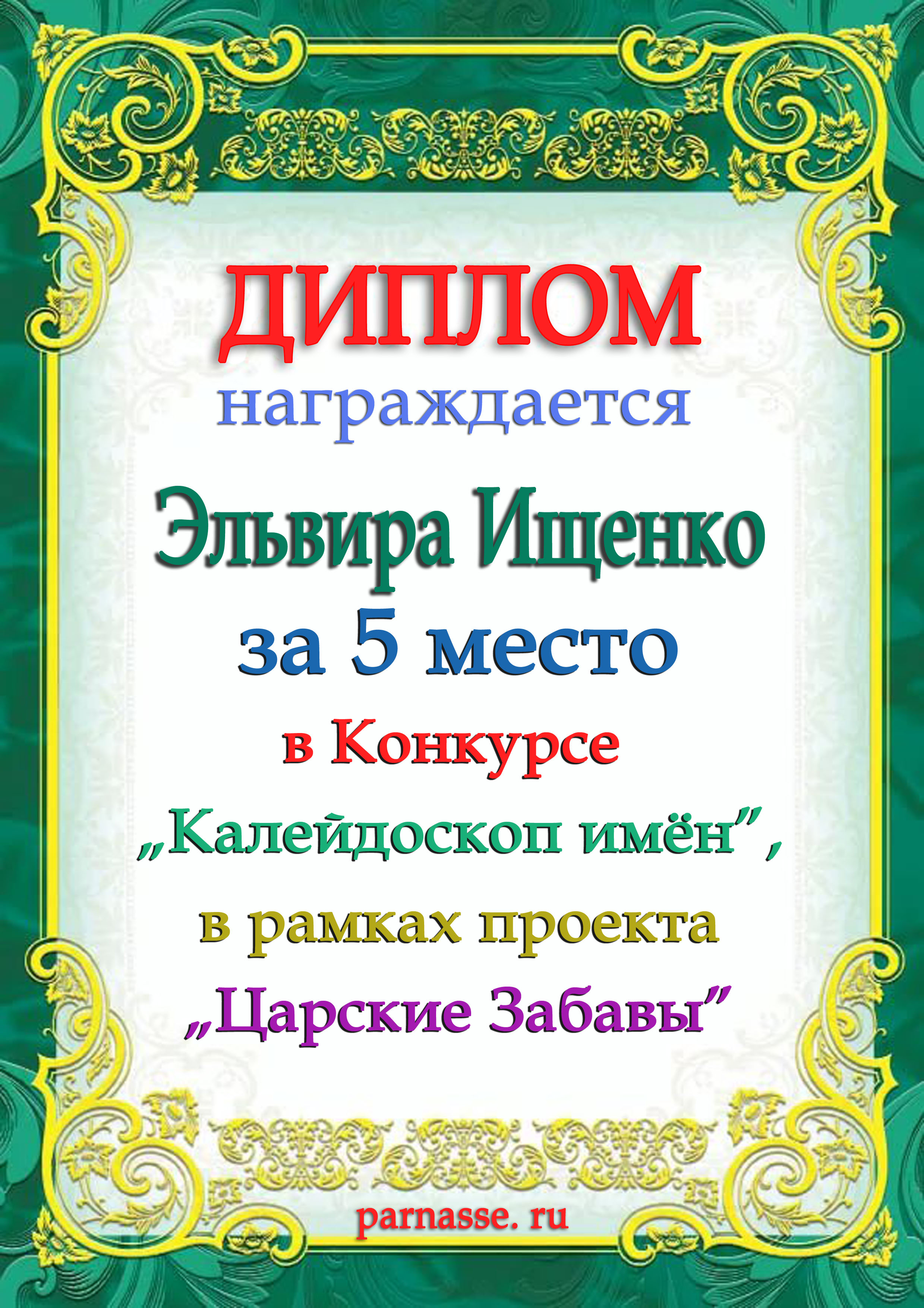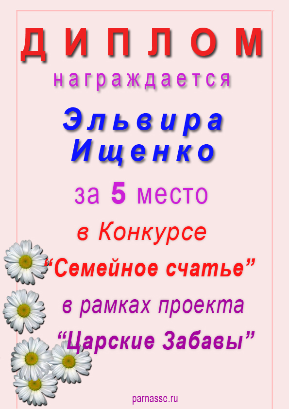 Поздравляю с занятым 5 местом в конкурсе! Спасибо за Ваше творчество!