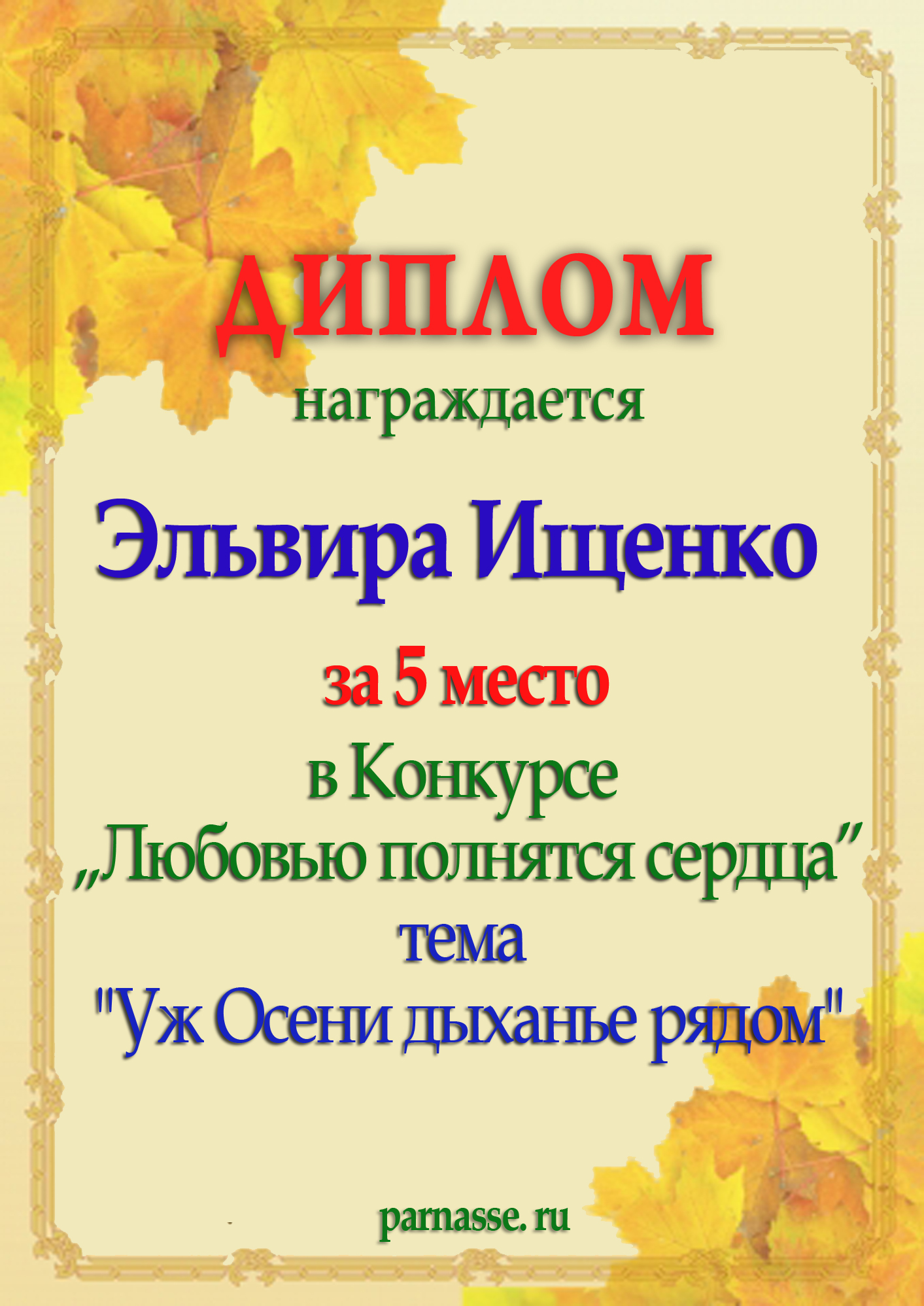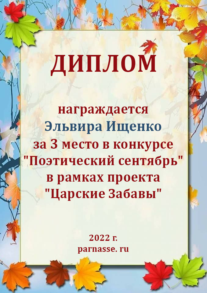 Поздравляем с занятым 2 местом в ЛИТКОНКУРСе «Золотом рассыпался сентябрь.,,», номинация – Поэзия (народное голосование)!