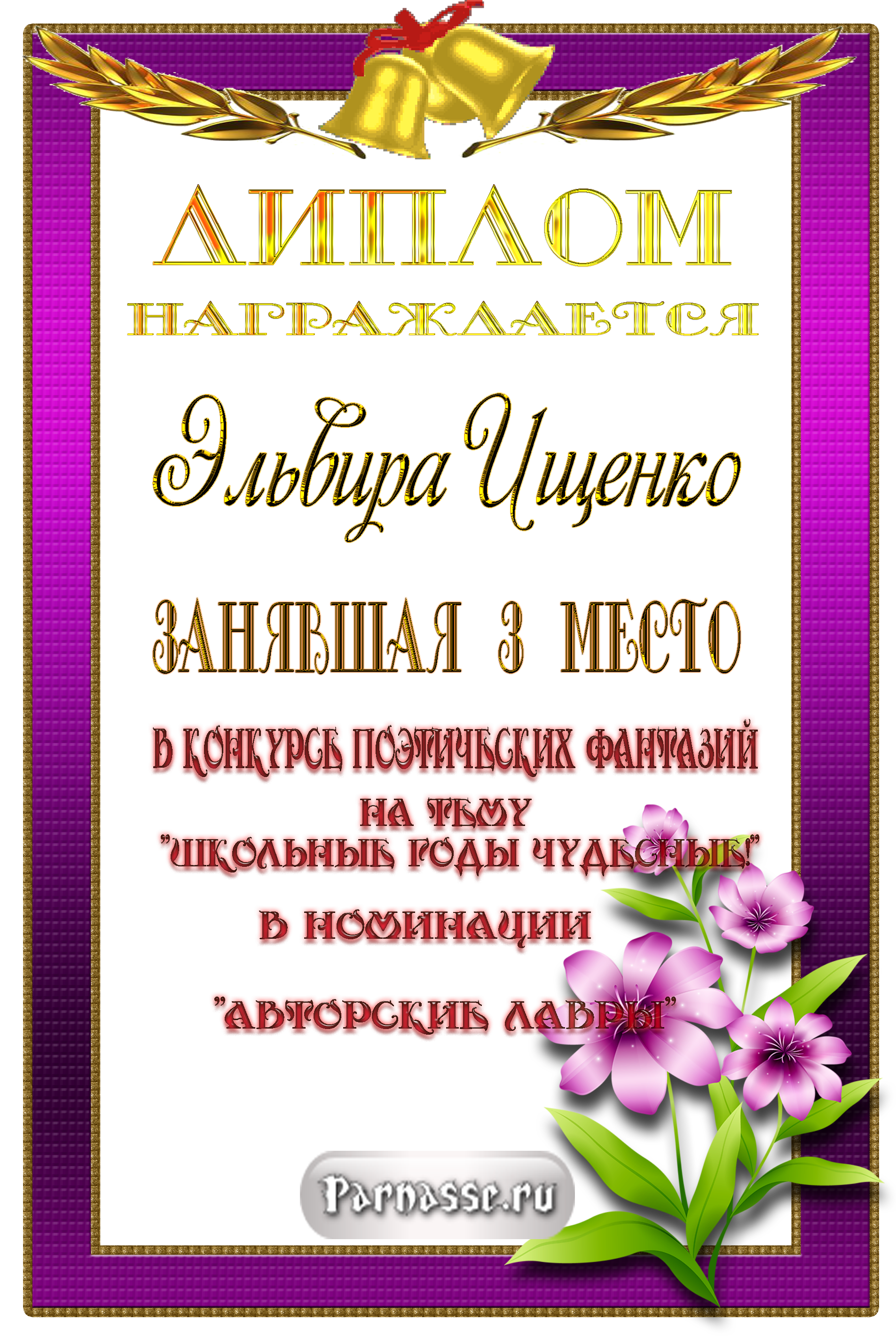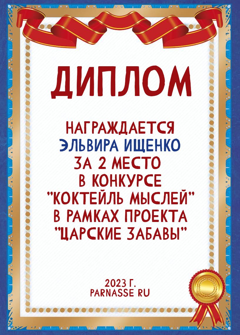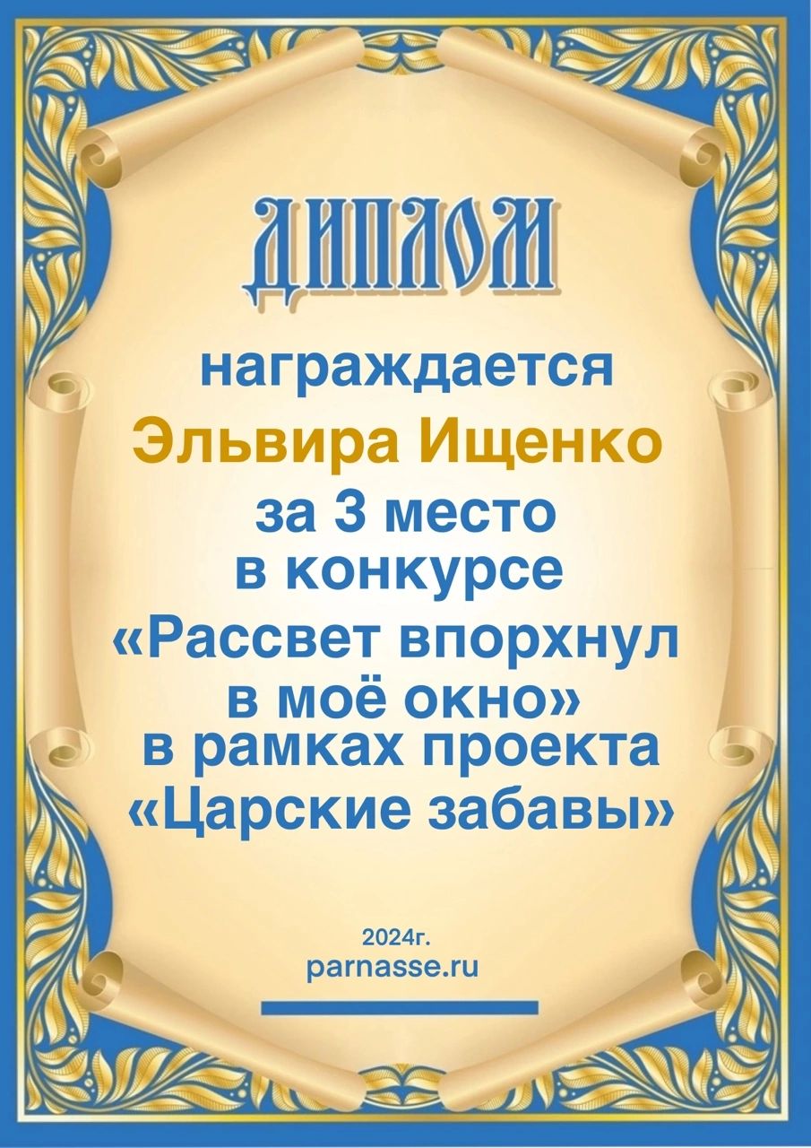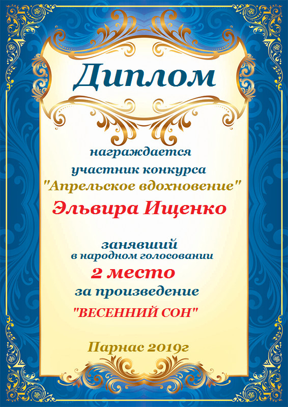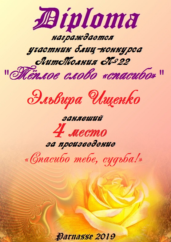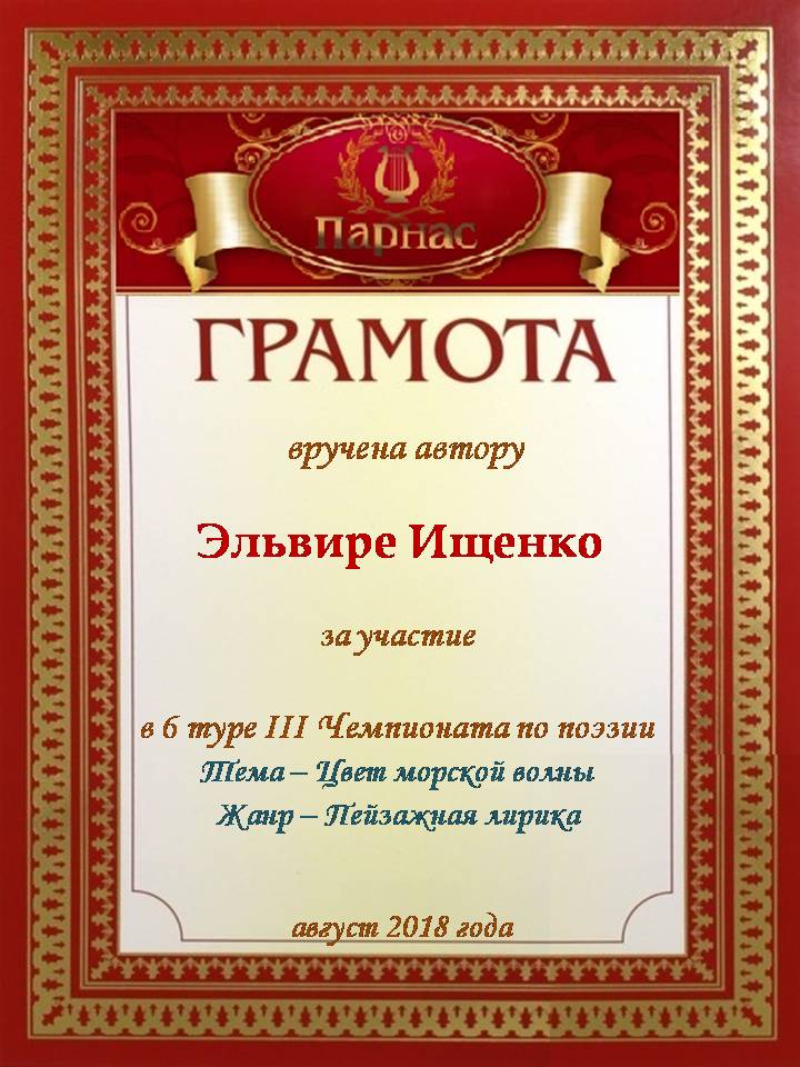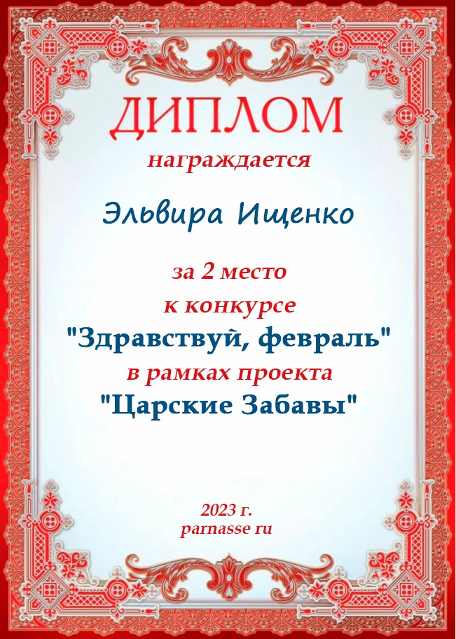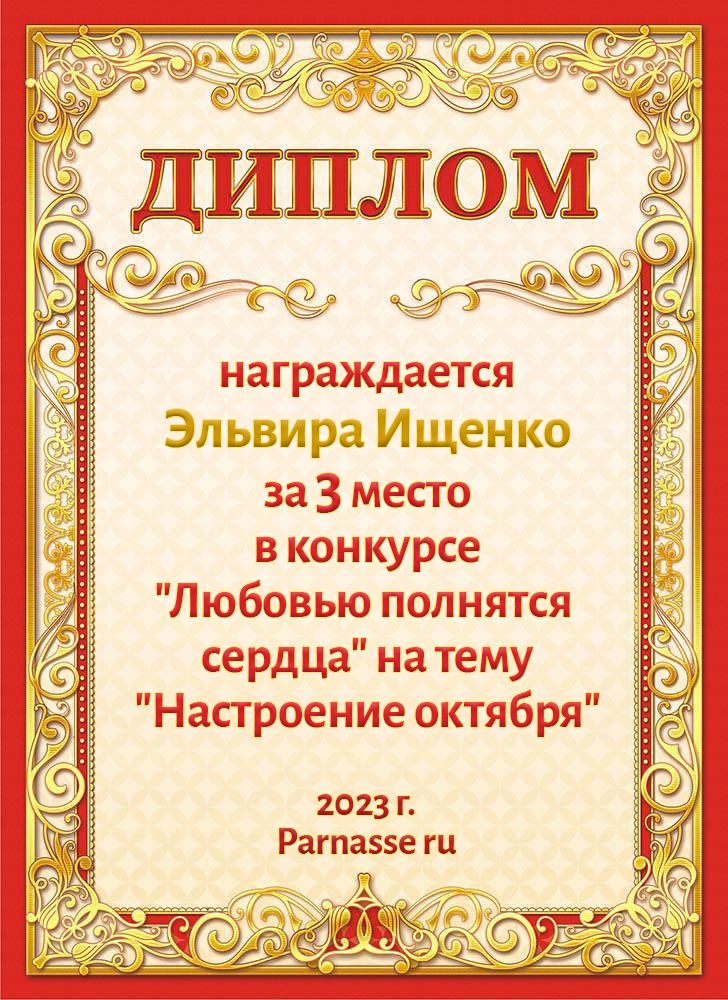 За неугасающую и неисчерпаемую творческую активность, постоянный контакт с Музой и признание сообществом "Парнасцев".От всей души желаем Вам, Эльвира, здоровья, любви, успехов, благополучия, удачи и творческого вдохновения!