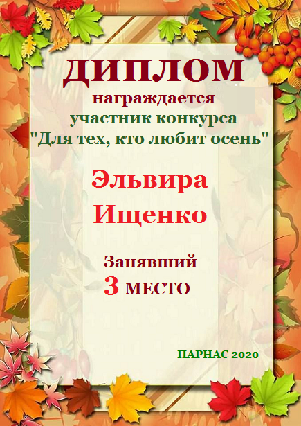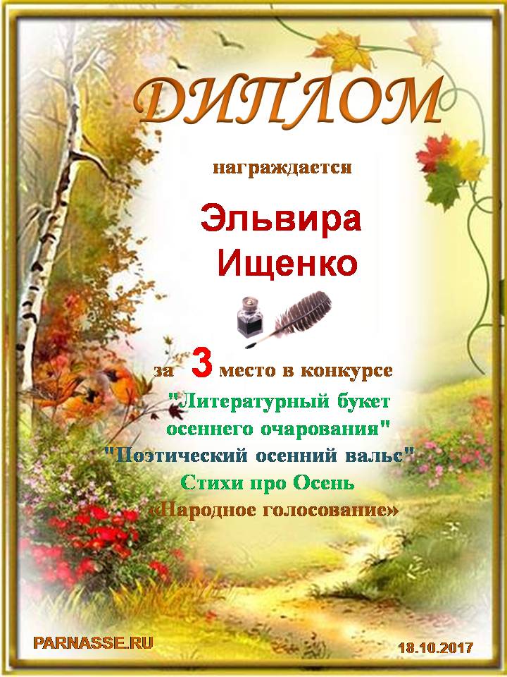Поздравляем с 3 местом в конкурсе "Литературный букет осеннего очарования" - номинация Поэзия, народное голосование!
