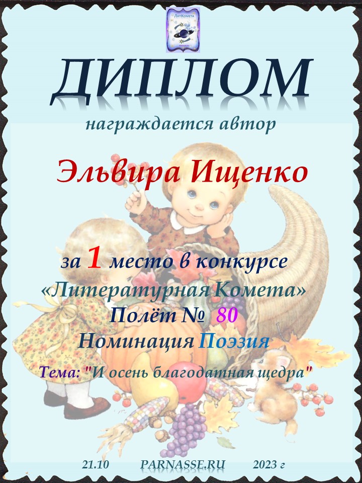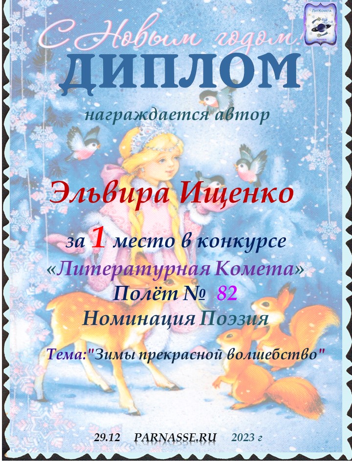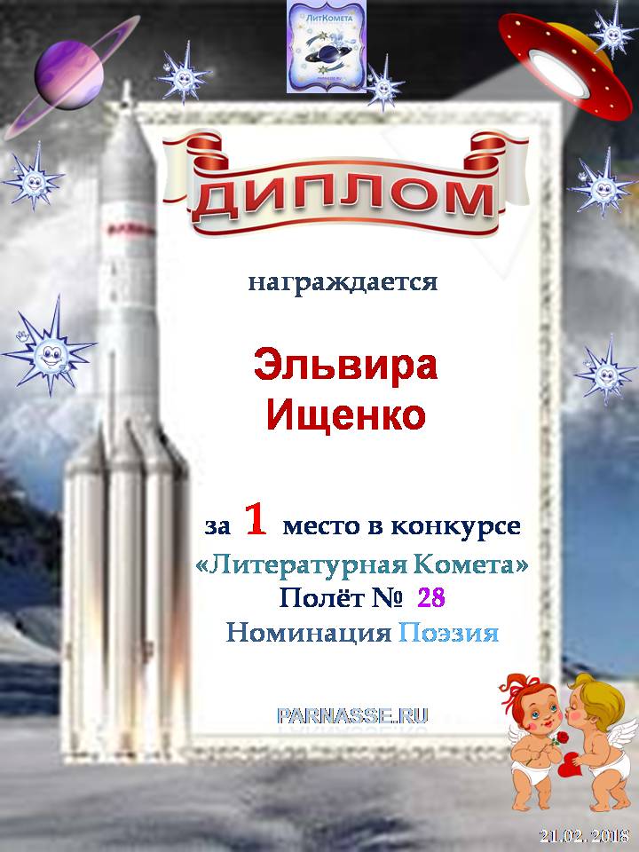 Поздравляю с 1 местом в конкурсе "ЛитКомета" Полёт № 28 - номинация Поэзия!