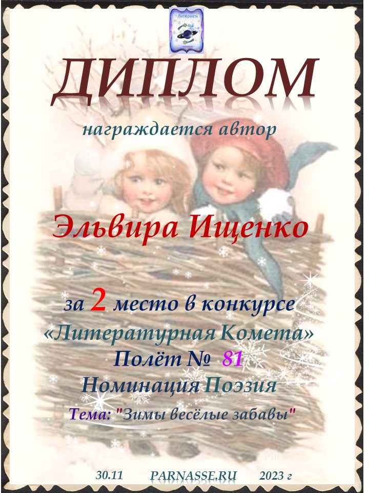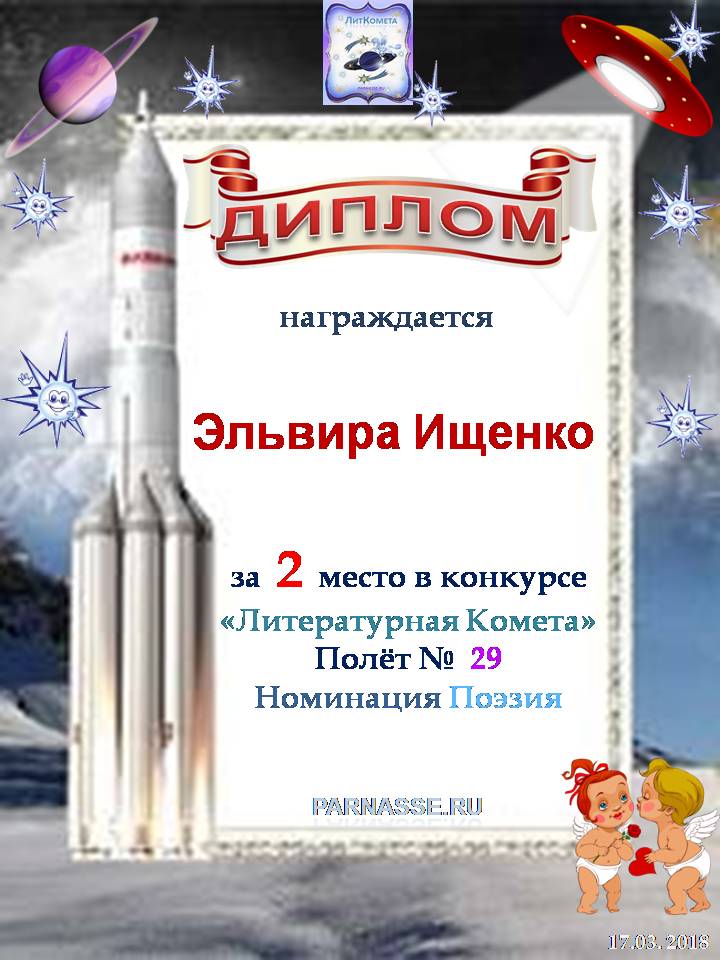 Поздравляю со 2 местом в конкурсе «ЛитКомета – Полёт № 29» - номинация Поэзия!