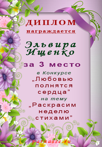 2 место в конкурсе "Поэзия чувств". Поздравляем!
