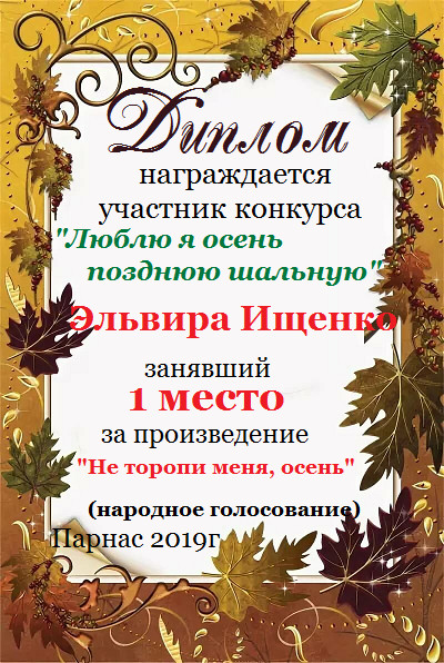 1 место в конкурсе "Бабье лето - подарок осени". Поздравляем!