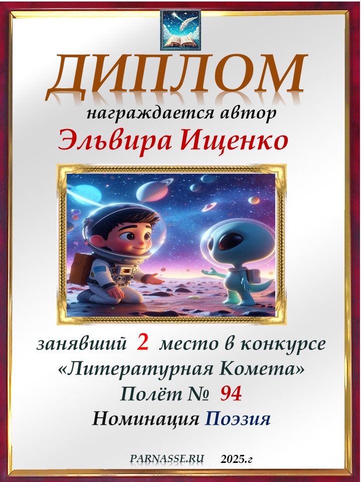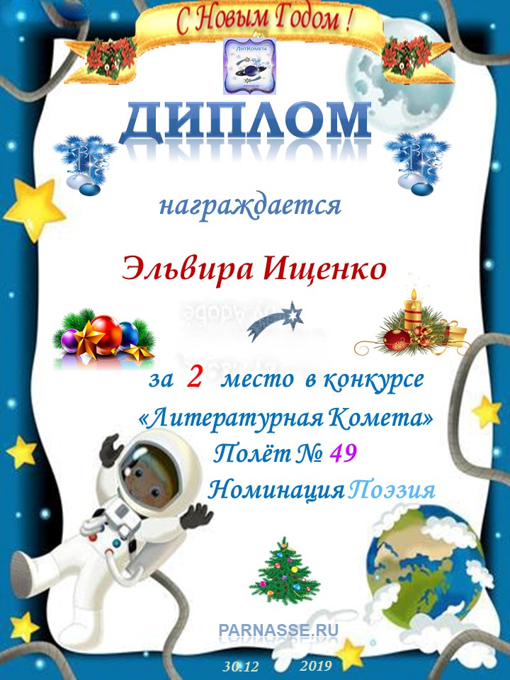 Поздравляю с занятым 2 местом в конкурсе «Литературная Комета – Полёт № 49» - Номинация Поэзия!