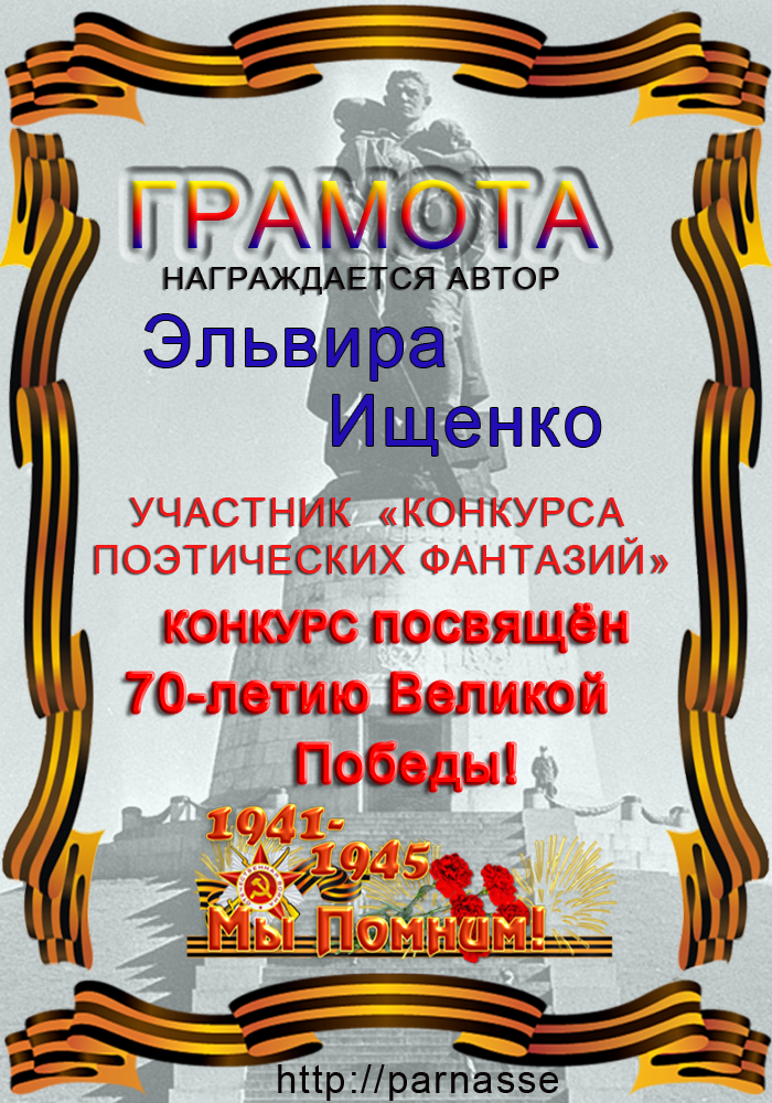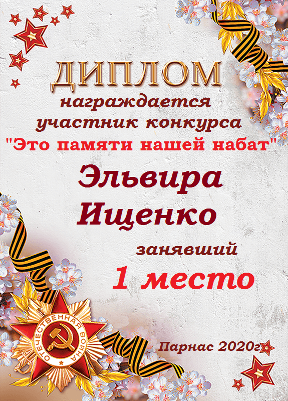 Первое место по решению Администрации и Главного судьи конкурса "Навечно в памяти"