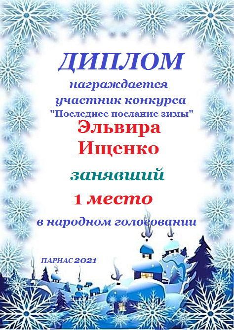 2 место в конкурсе "Очарование Снежной Королевы". Поздравляем!