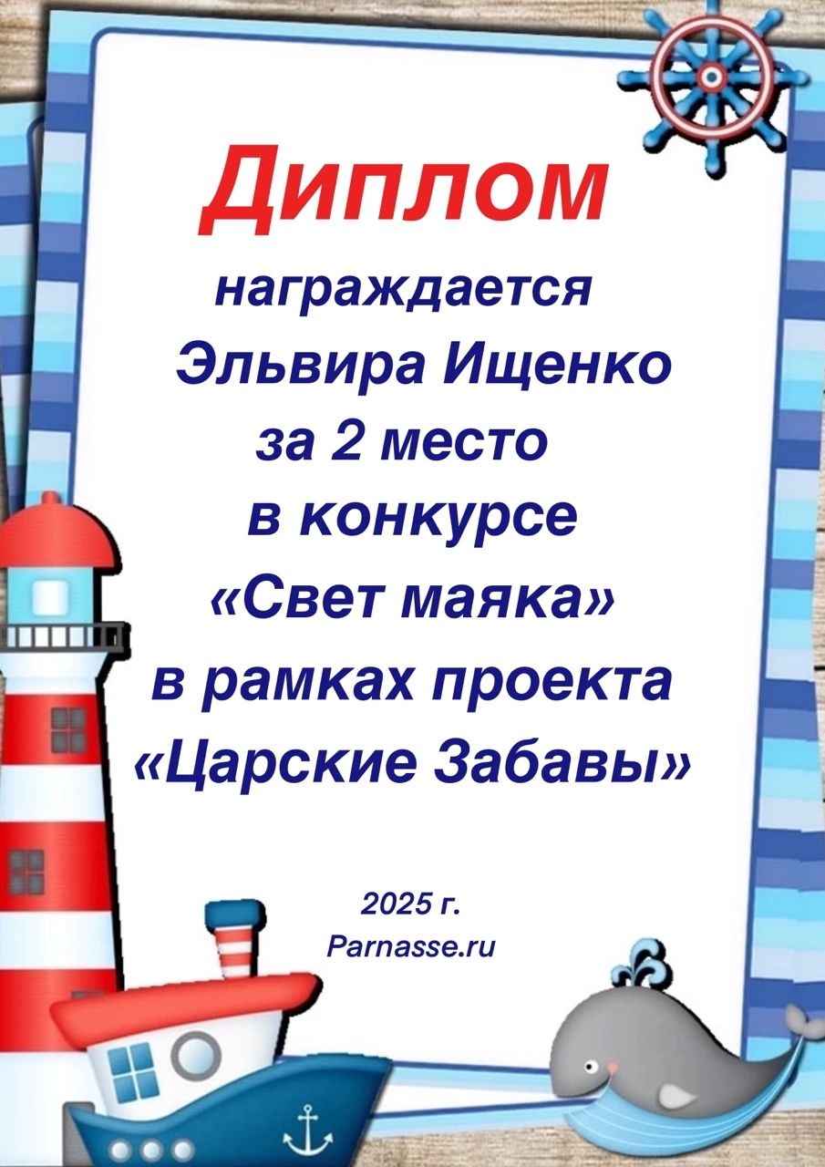 2 место в конкурсе "Свет маяка". Поздравляем!