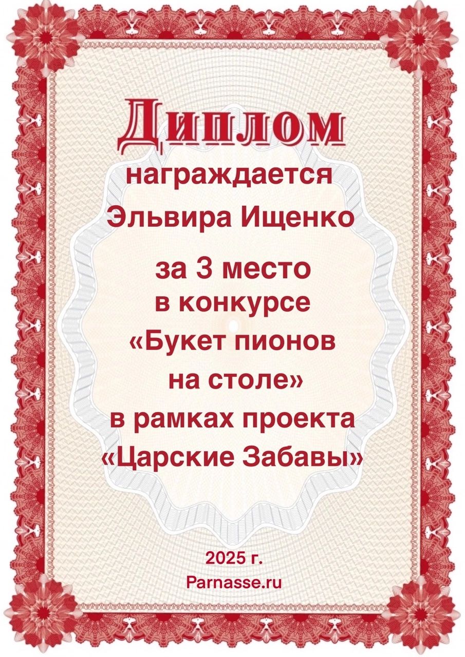 3 место в конкурсе "Букет пионов на столе". Поздравляем!