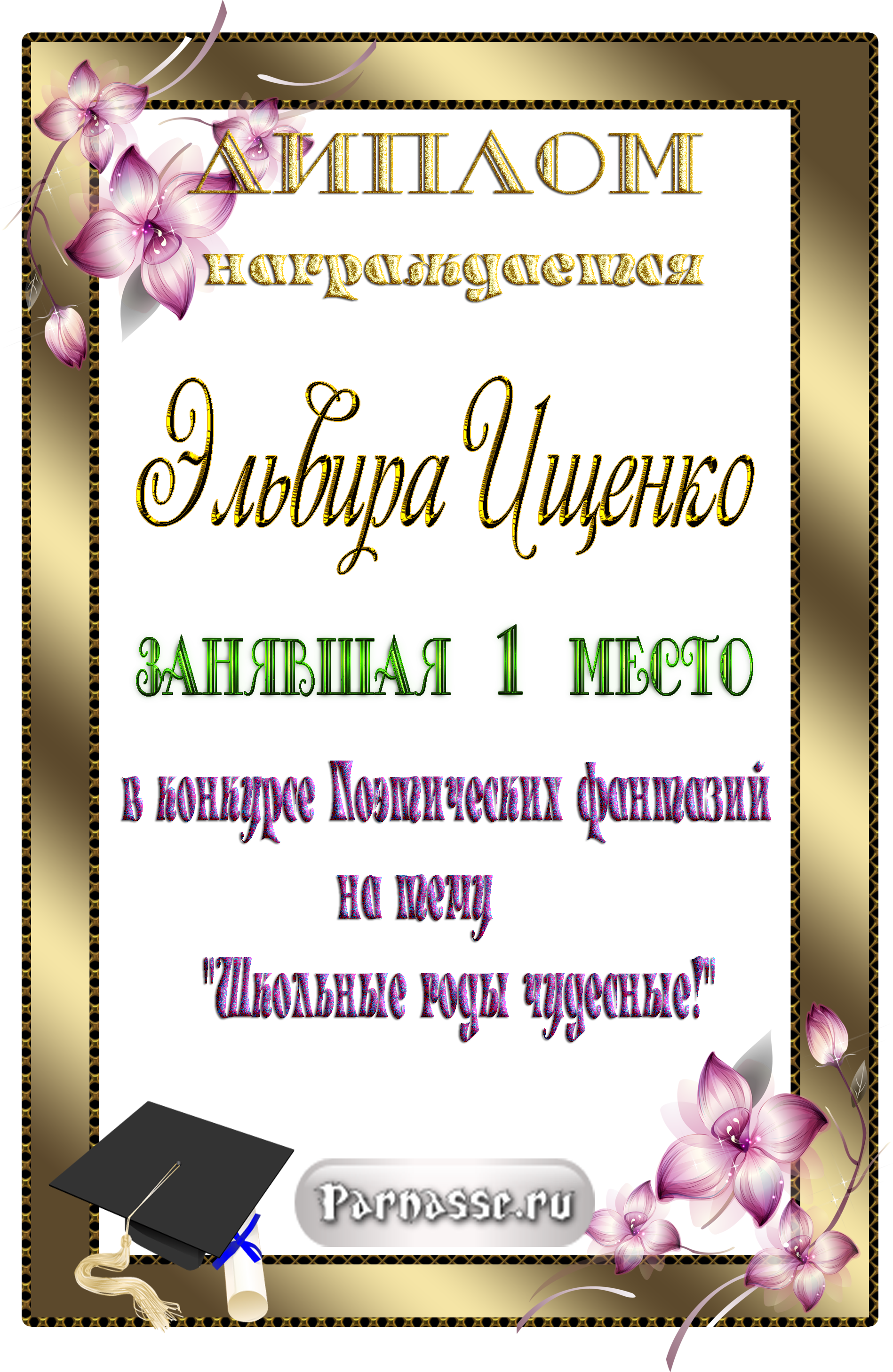 От души поздравляю! Новых побед в конкурсах!Дальнейших творческих успехов!