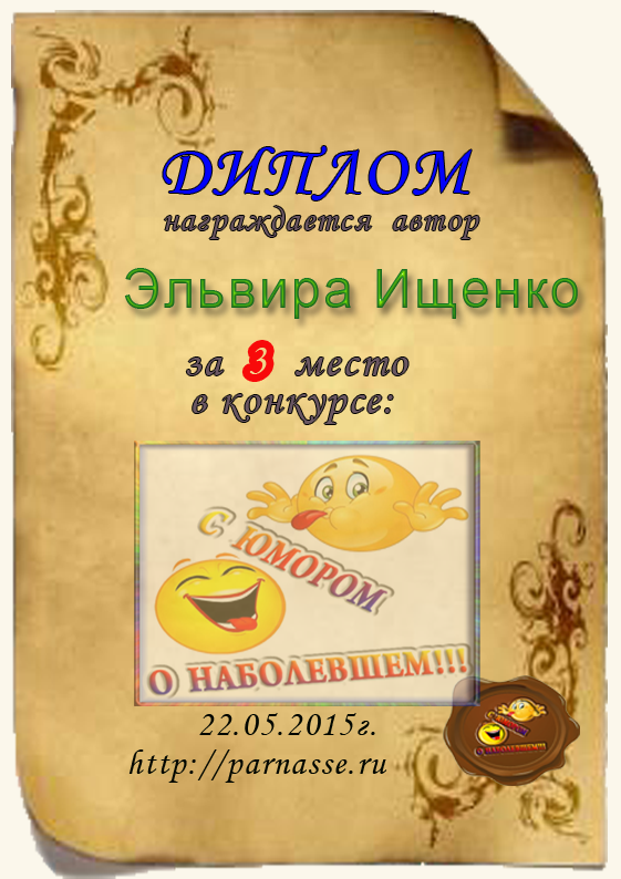 Диплом за 3 место в конкурсе " С юмором. о наболевшем"