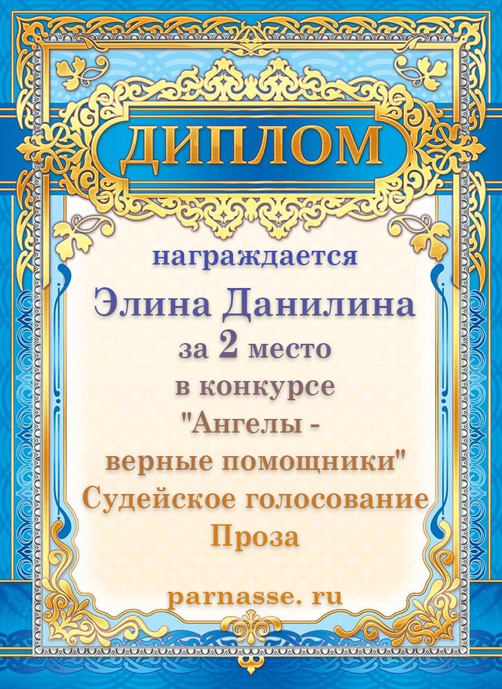 2 место в конкурсе "Ангелы -верные помощники". Судейское голосование. Проза