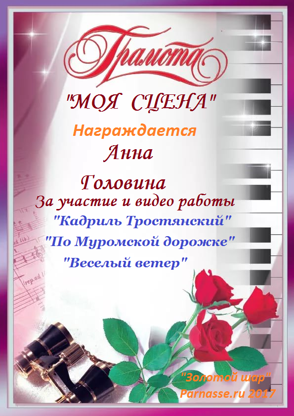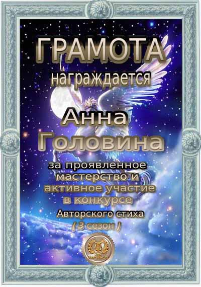 За проявленное мастерство и активное участиев конкурсе Авторского стиха (3 сезон)