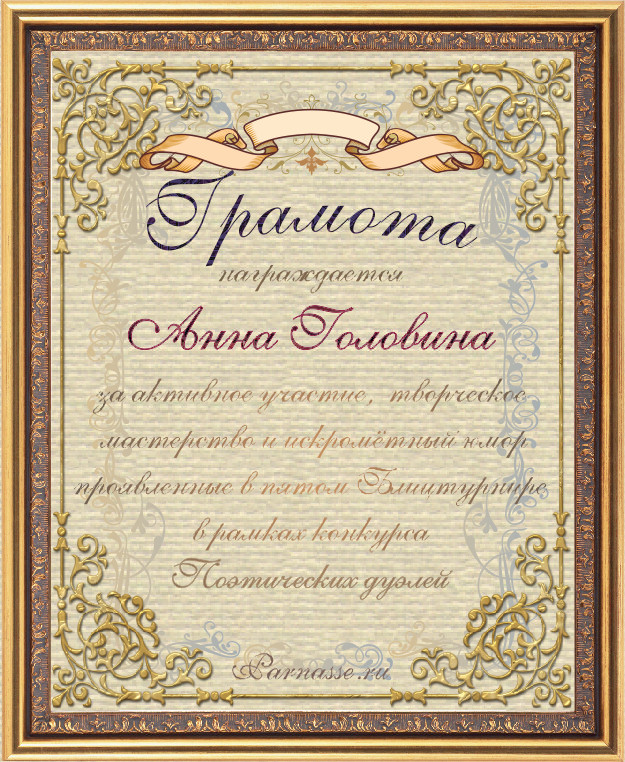 Диплом победителю в конкурсах Акростиха в связи с пятилетием конкурса Акростиха!