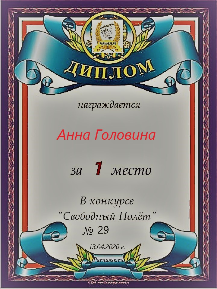 за 2 место в конкурсе "Свободный Полёт" № 35 ПОЭЗИЯ