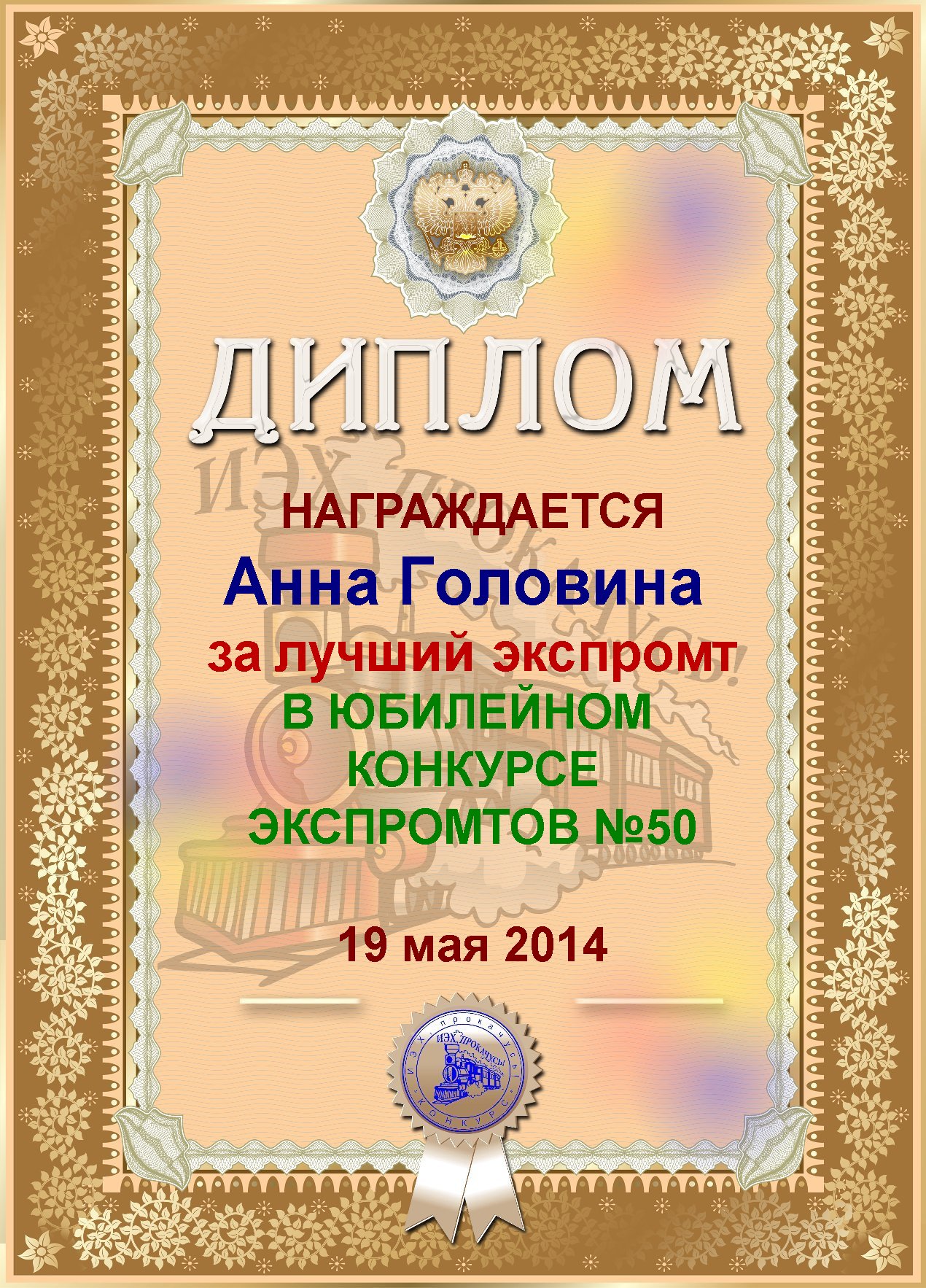 ![]() Золотой Кубок "ЛУЧШАЯ ЭКСПРОМТЩИЦА МЕСЯЦА"